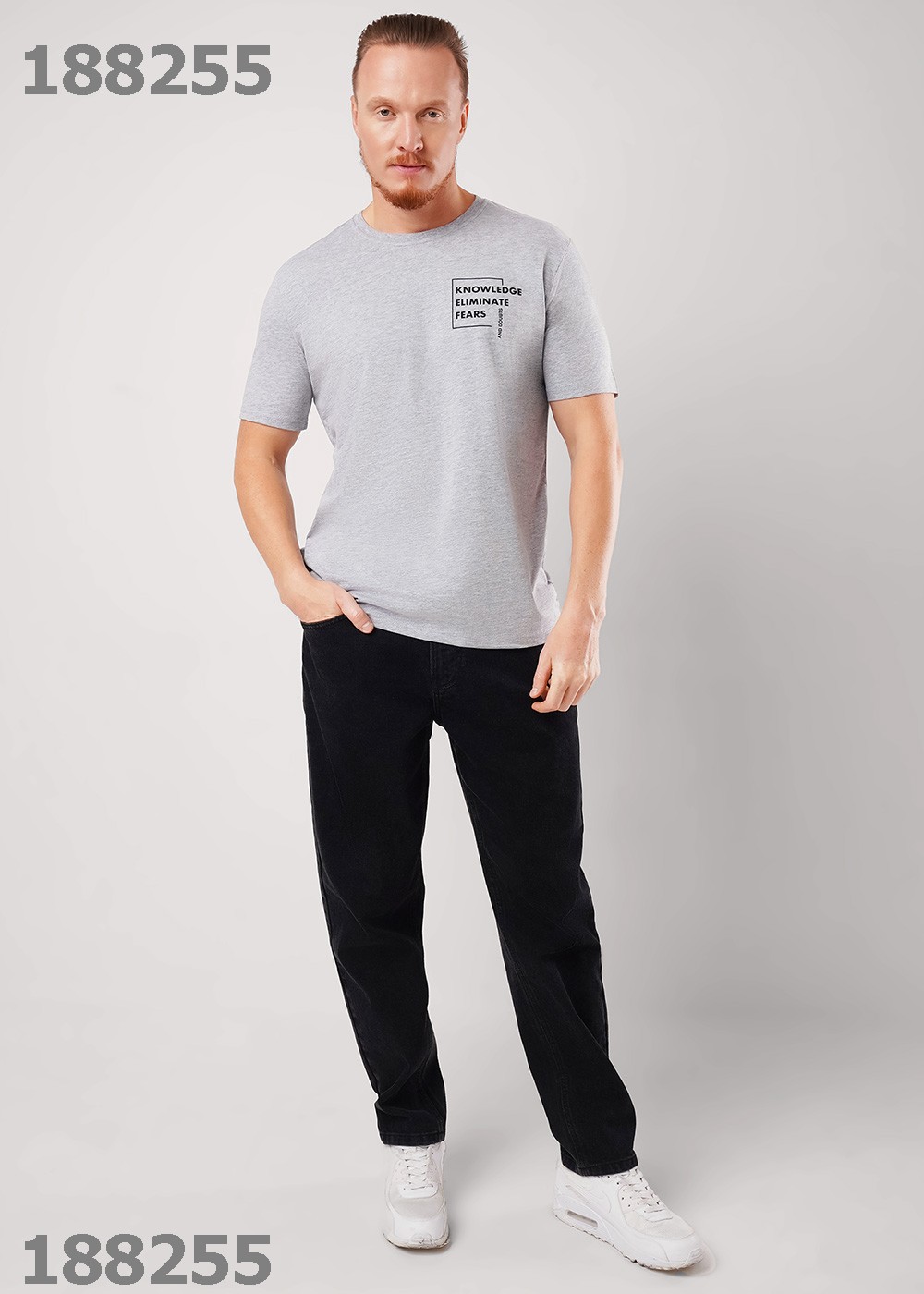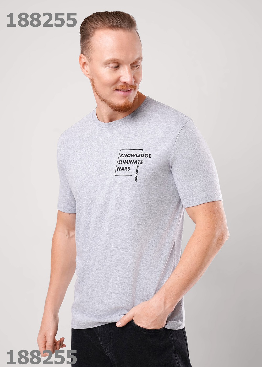 Описание: Базовая однотонная футболка стандартного объема с круглой горловиной, втачным рукавом из хлопкового меланжевого полотна с добавлением эластана. Является неотъемлемой частью мужского гардероба.