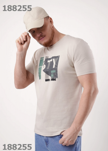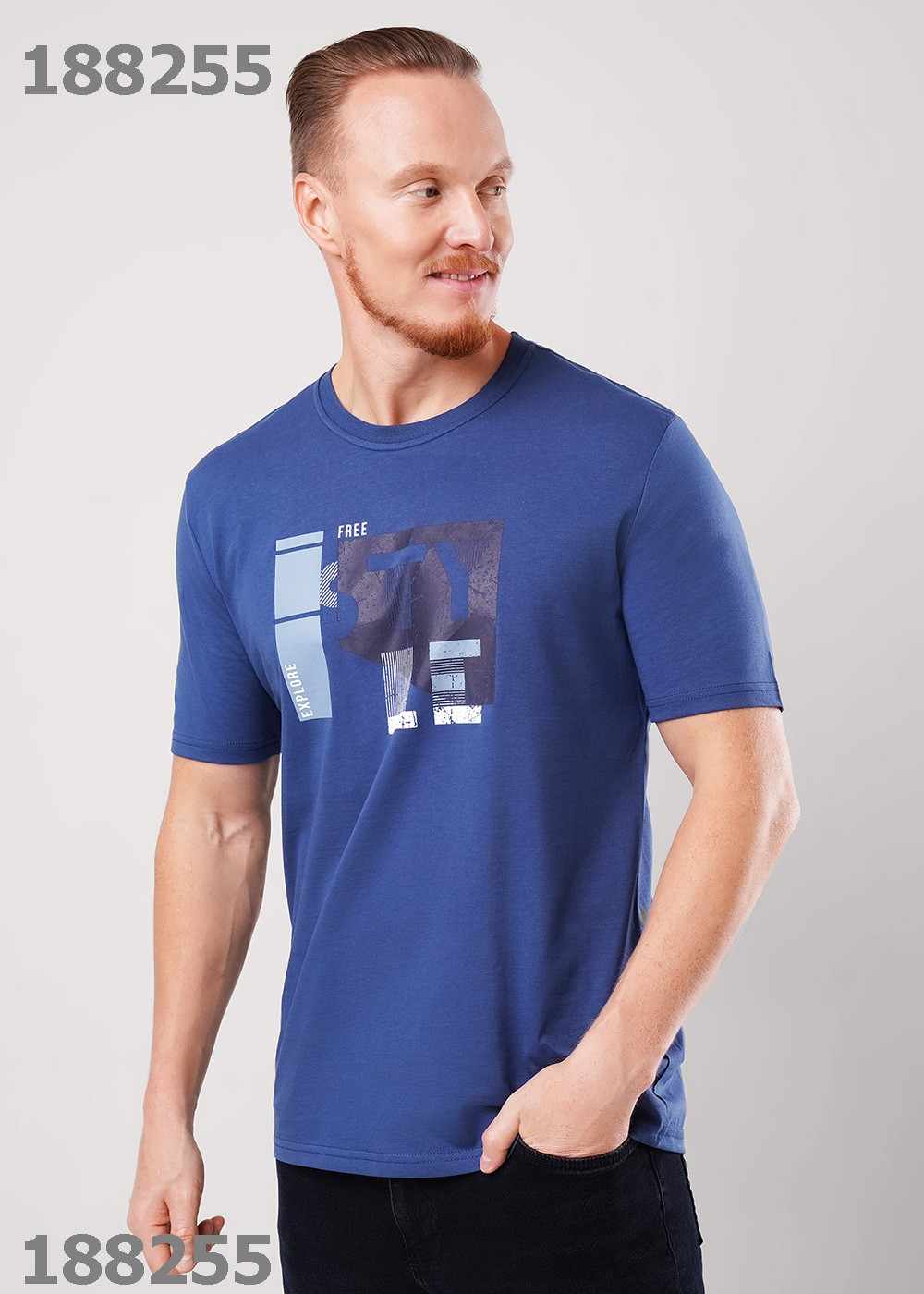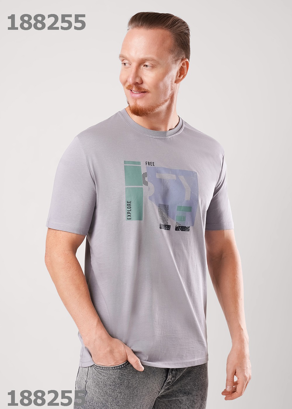 Описание: Фуфайка с коротким рукавом среднего объема, с оригинальным принтом, круглым вырезом горловины, которая оформлена обтачкой из рибаны.