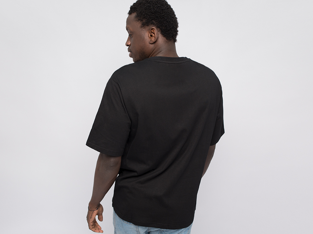 Мягкое трикотажное изделие с округлой горловиной, карманом