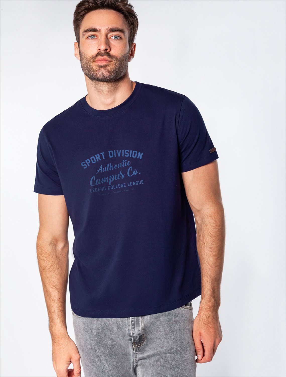 Футболка выполнена из премиального хлопка. Авторский лаконичный принт нанесен водными красками с устойчивым покрытием. Наличие эластана в составе изделия гарантирует непревзойдённый комфорт. Изделие сохранит первоначальный внешний вид в течении долгого времени. Нашивка с логотипом бренда из эко-кожи. т.синий__sport division