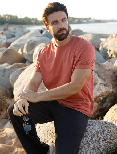 Футболка выполнена из фактурного полотна из 100% хлопка. Базовая однотонная модель, без труда впишется в любой гардероб. Ткань имеет характерный рисунок черточки за счет сочетания разных волокон хлопка 140-150 г. Хорошо держит форму и поддерживает комфортный микроклимат в течении дня. На рукаве нашивка из эко-кожи с логотипом бренда.