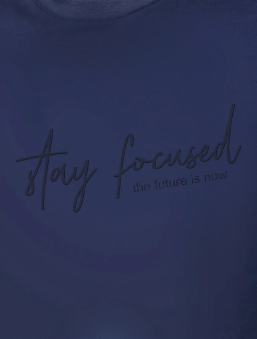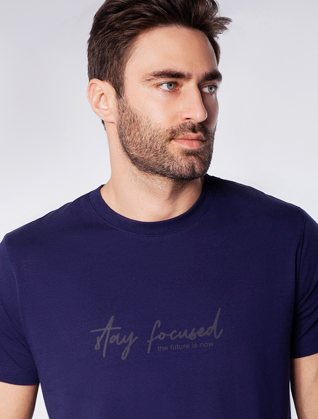 Перевод: "Не теряй фокус. Будущее уже сейчас" надпись выполнена пуффом и красками с устойчивым покрытием. Футболка выполнена из премиального хлопка. Особым преимуществом является наличие эластана в составе изделия. Очень приятная на ощупь и комфортная при носке, футболка сохранит свой безупречный внешний вид в течении долгого времени. Модель дополнена нашивкой из эко-кожи с логотипом VILATTE. темно-синий_stay focused