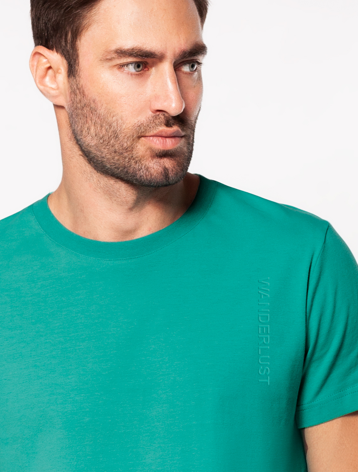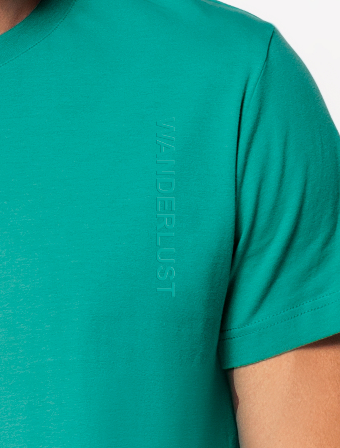 Перевод: "Страсть к путешествиям" надпись выполнена пуффом и красками с устойчивым покрытием. Футболка выполнена из премиального хлопка. Особым преимуществом является наличие эластана в составе изделия. Очень приятная на ощупь и комфортная при носке, футболка сохранит свой безупречный внешний вид в течении долгого времени. Модель дополнена нашивкой из эко-кожи с логотипом VILATTE. бирюзовый_wanderlust