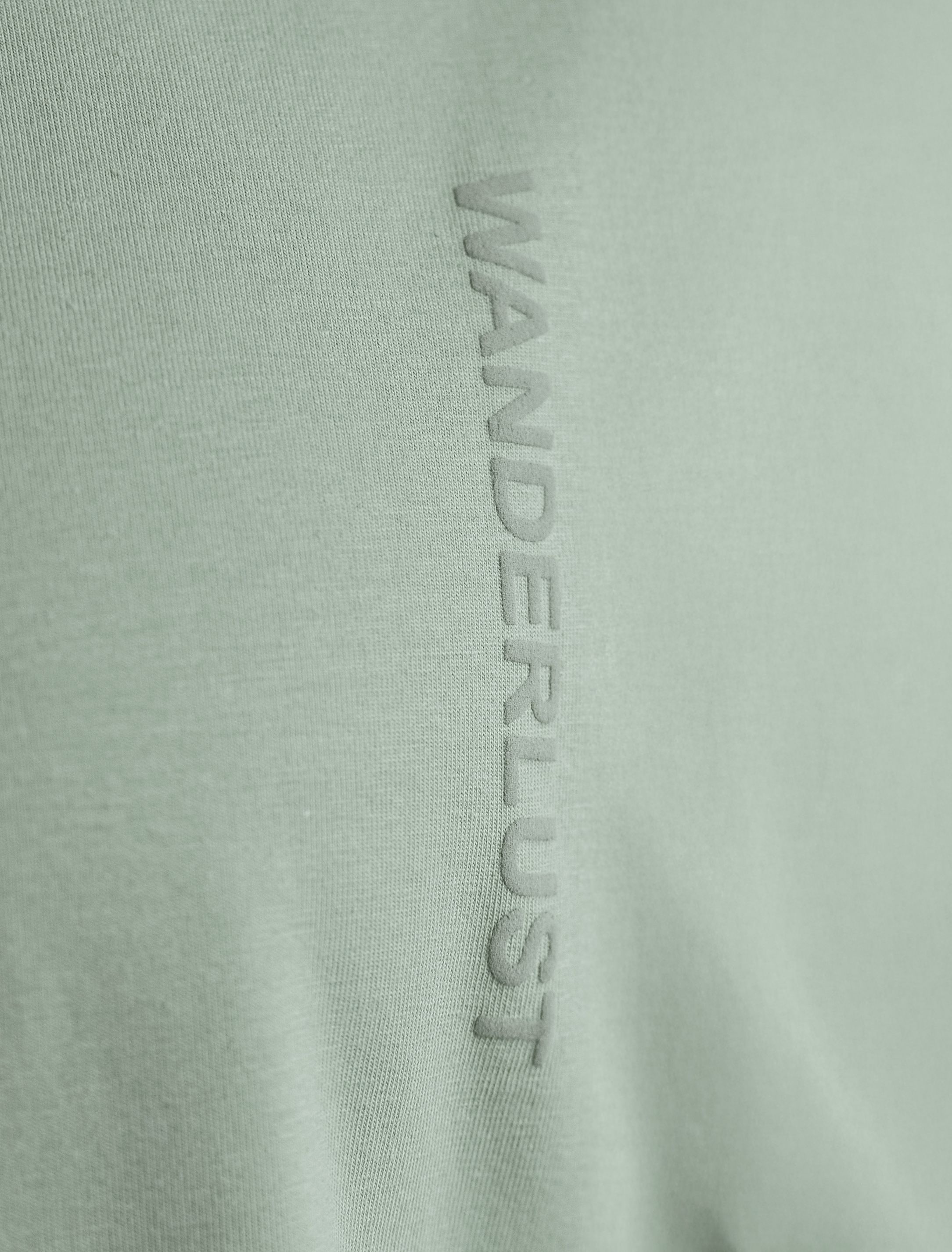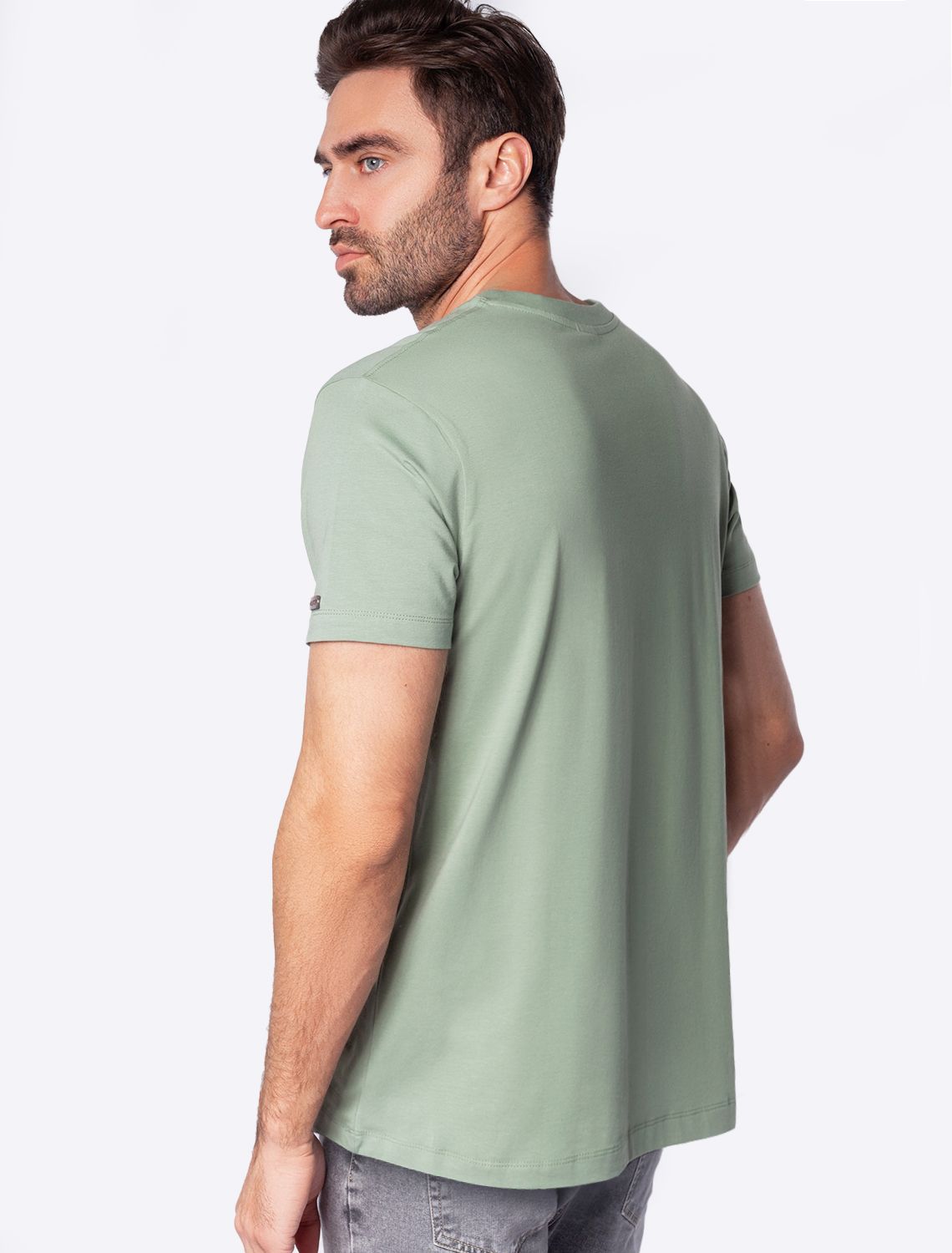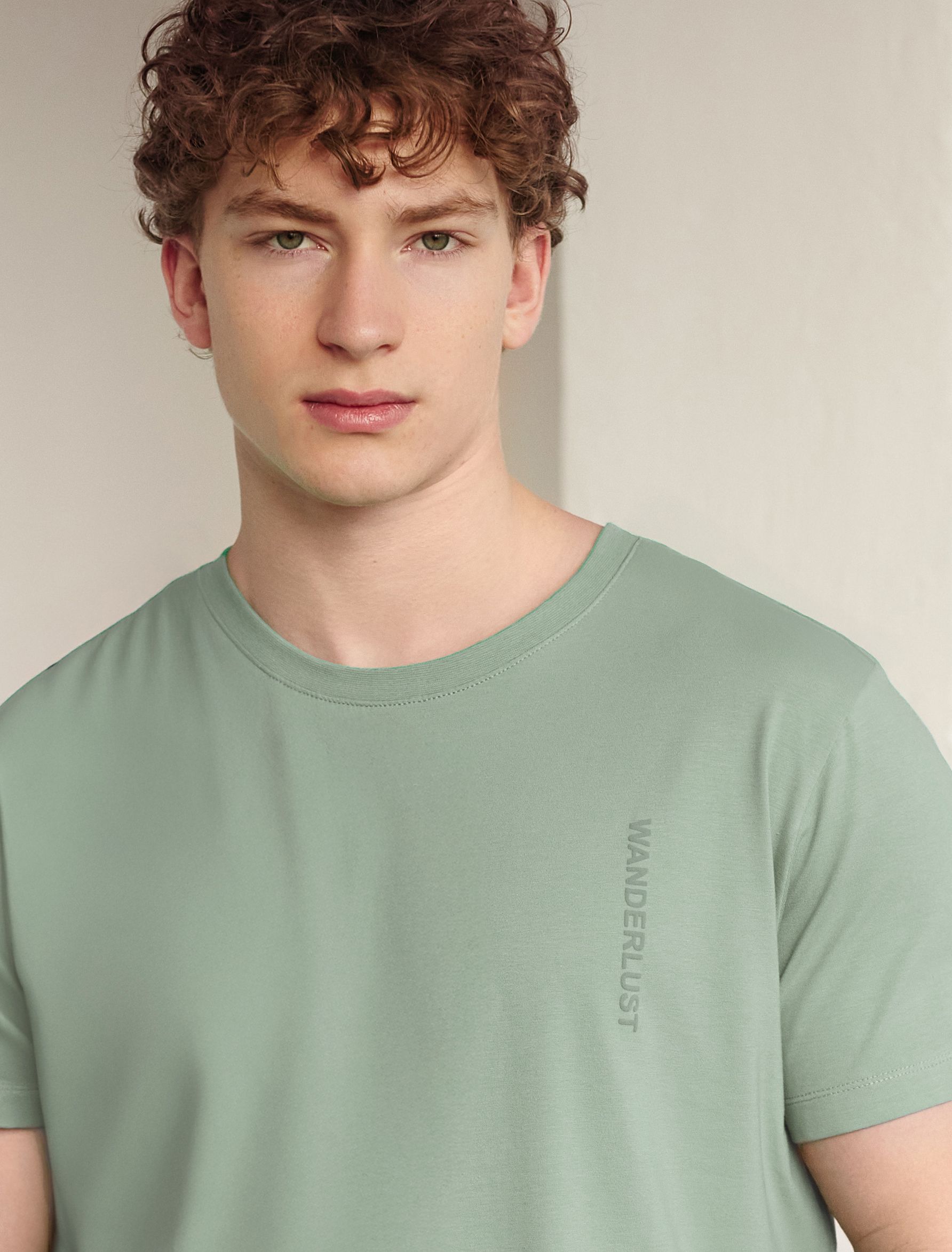 Ст.цена 1250р Футболка из премиального хлопка с авторским принтом U49.026 св.оливка_wanderlust