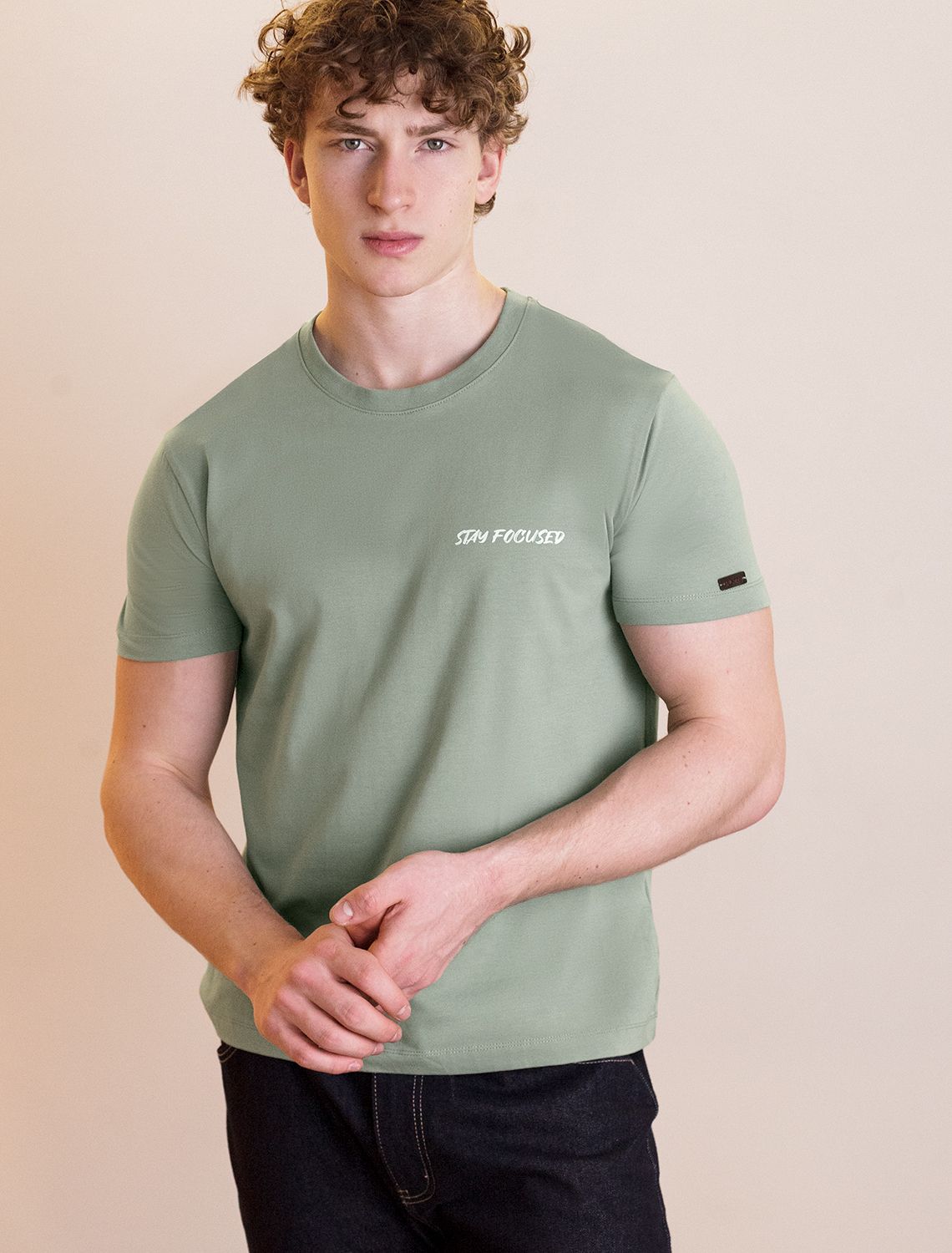 Ст.цена 1190р Футболка из премиального хлопка с авторским принтом U49.026 св.оливка_you_win