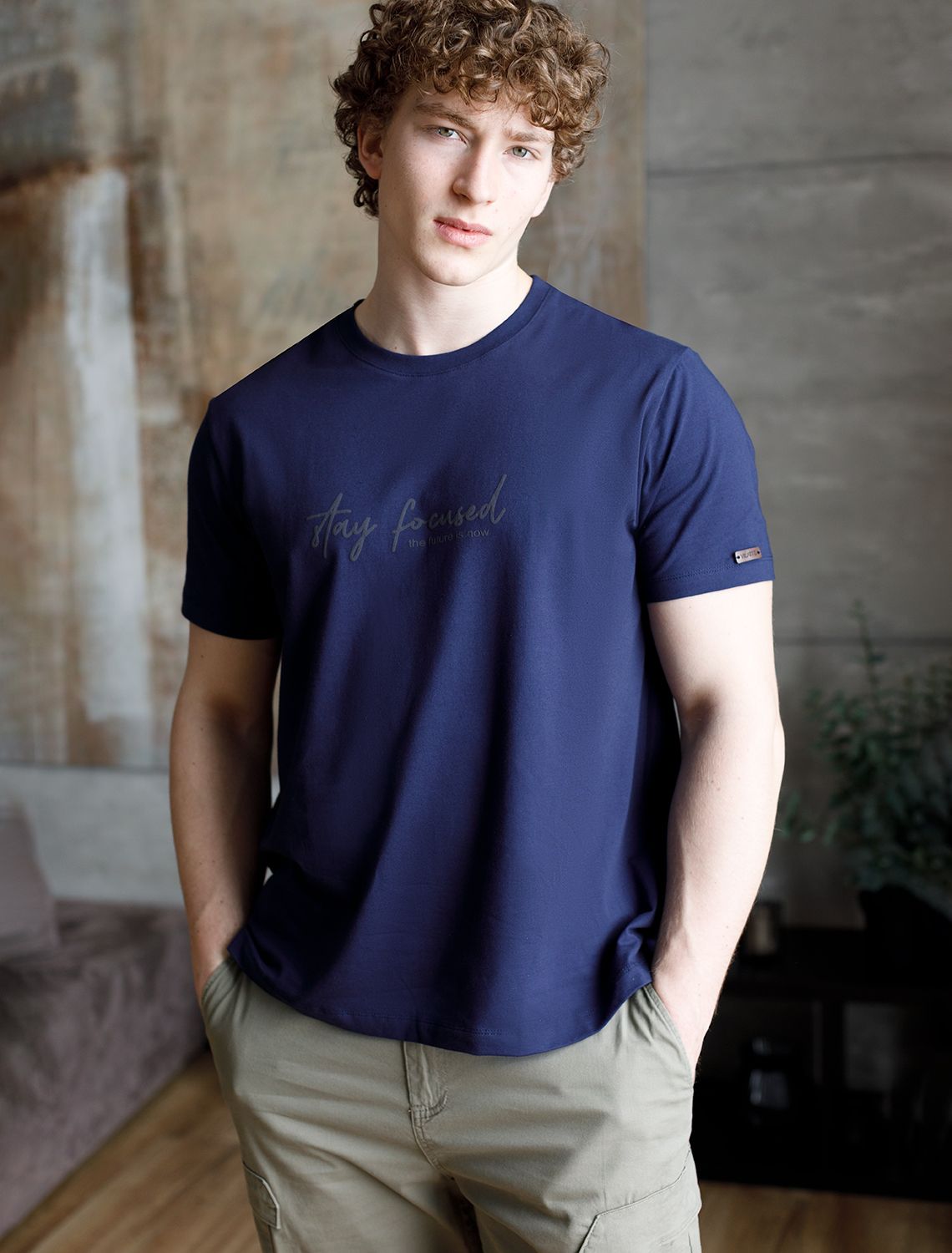 Ст.цена 1190р Футболка из премиального хлопка с авторским принтом U49.026 темно-синий_stay focused