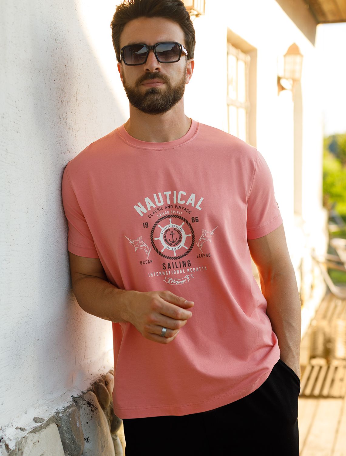 Футболка из премиального хлопка с авторским принтом U49.045 коралловый_regatta