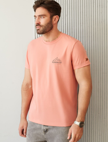 Футболка из премиального хлопка с авторским принтом U49.045 коралловый_wanderlust
