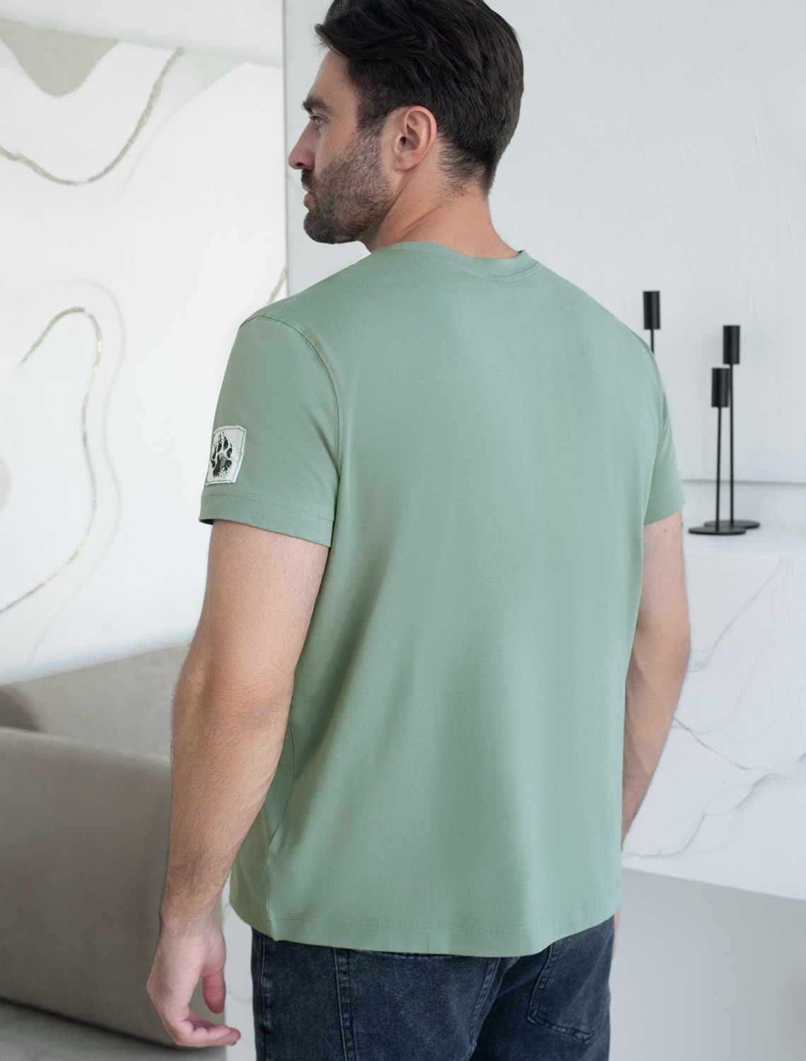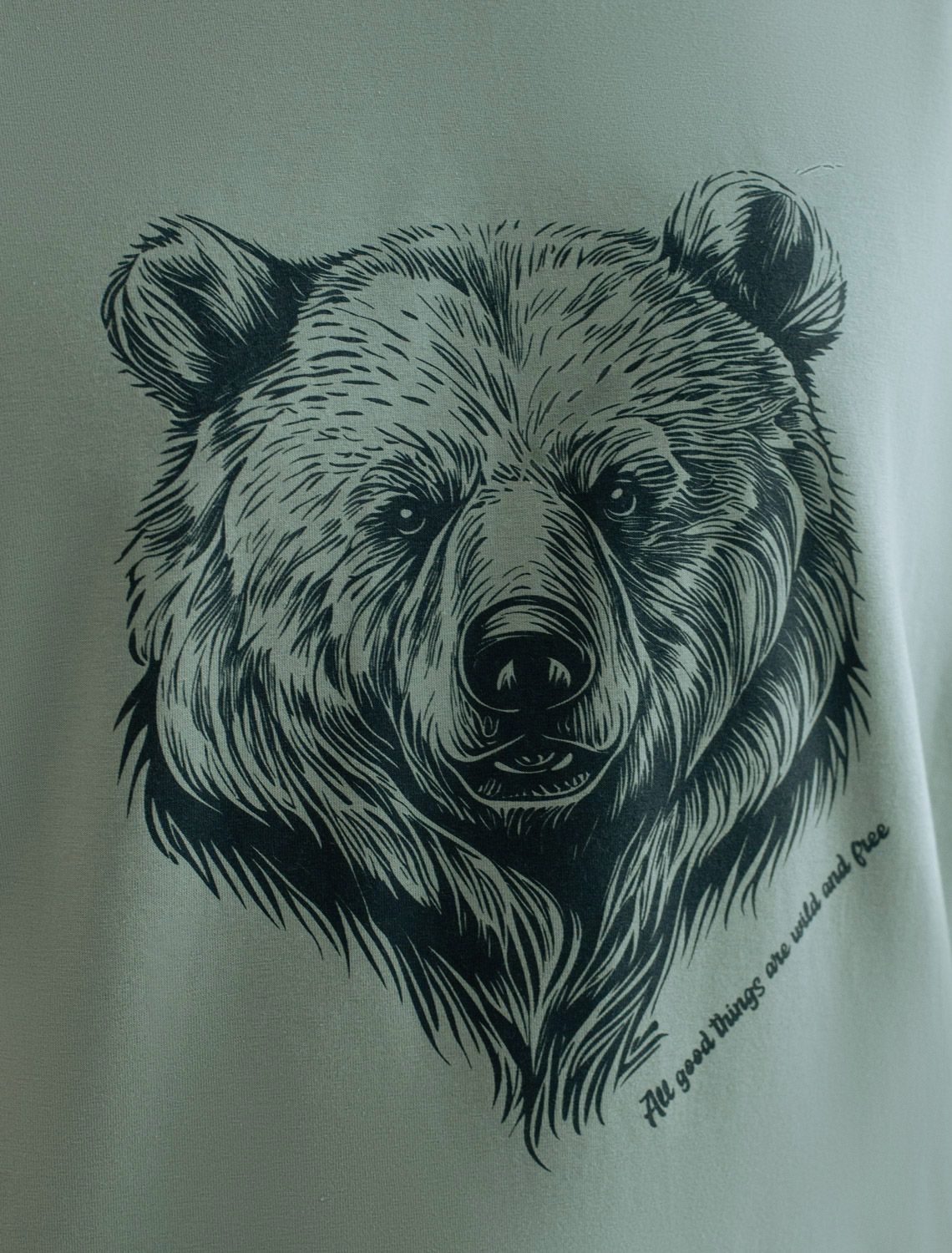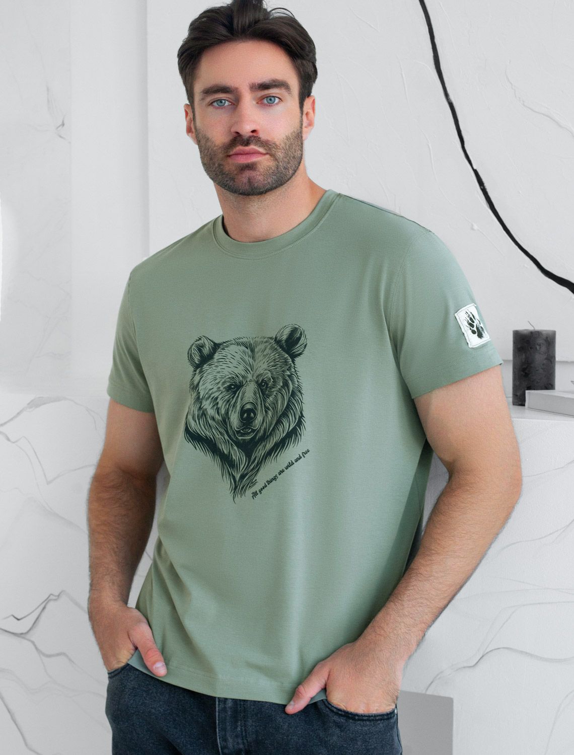 Футболка из премиального хлопка с авторским принтом U49.045 св.оливковый_медведь