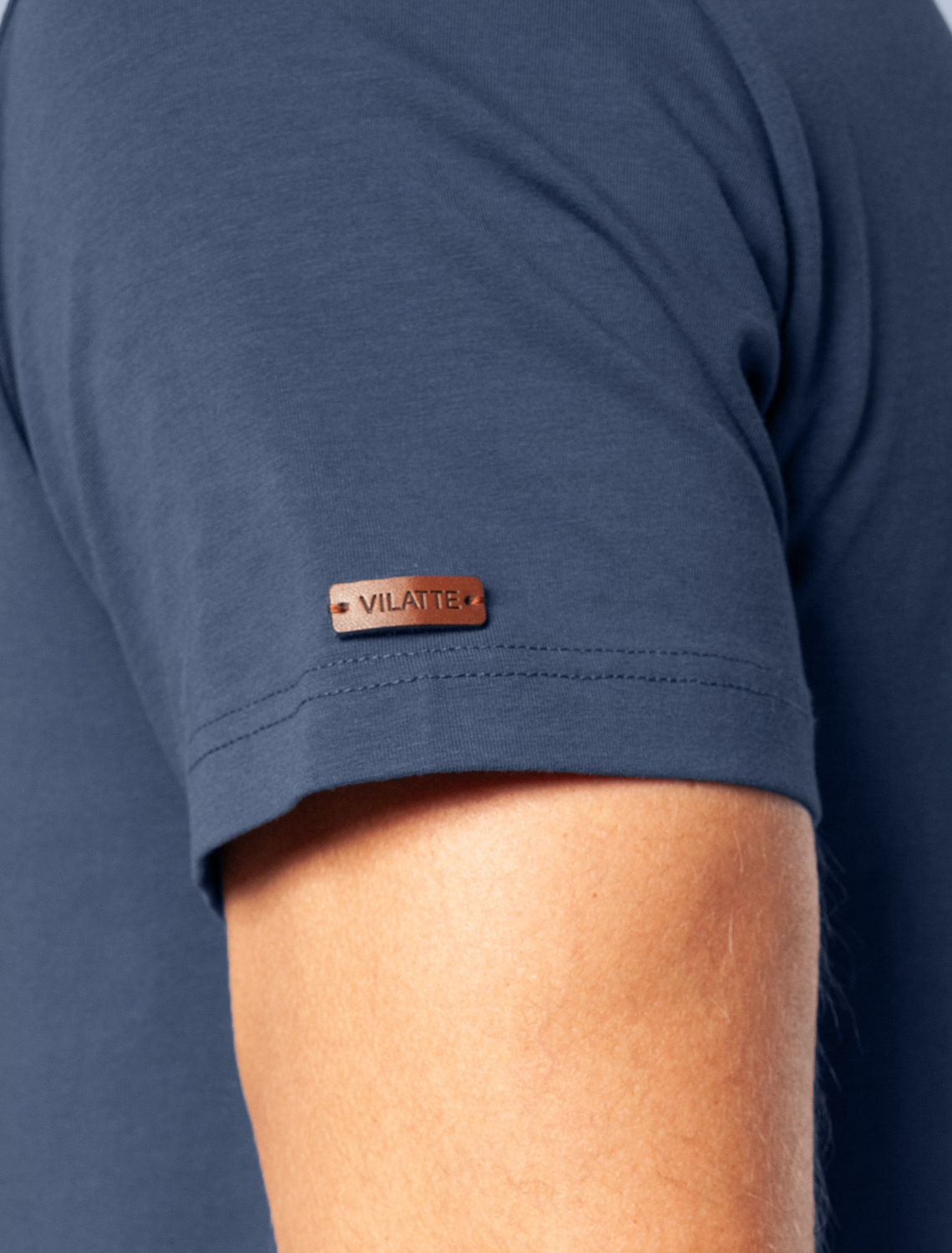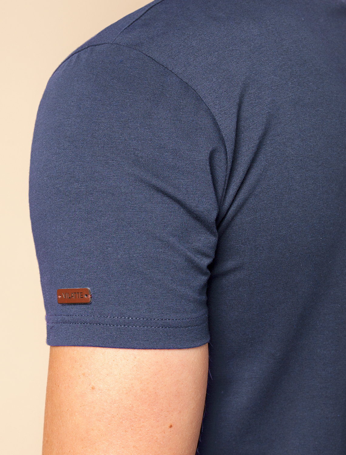 Однотонная футболка выполнена в минималистичном стиле, дополнена аккуратной вышивкой на груди в виде буквы V в тон изделия, а так нашивкой на рукаве из эко-кожи с логотипом VILATTE. Подходит как классический вариант для работы в офисе под пиджак, так и для повседневной носки или занятий спортом. Мягкая ткань приятна к телу, не вызывает дискомфорта и идеально подходит для дома или летних прогулок благодаря короткому рукаву.
