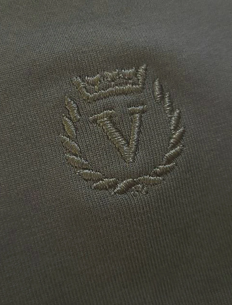 Однотонная футболка выполнена в минималистичном стиле, дополнена аккуратной вышивкой на груди в виде буквы V в тон изделия, а так нашивкой на рукаве из эко-кожи с логотипом VILATTE. Подходит как классический вариант для работы в офисе под пиджак, так и для повседневной носки или занятий спортом. Мягкая ткань приятна к телу, не вызывает дискомфорта и идеально подходит для дома или летних прогулок благодаря короткому рукаву.