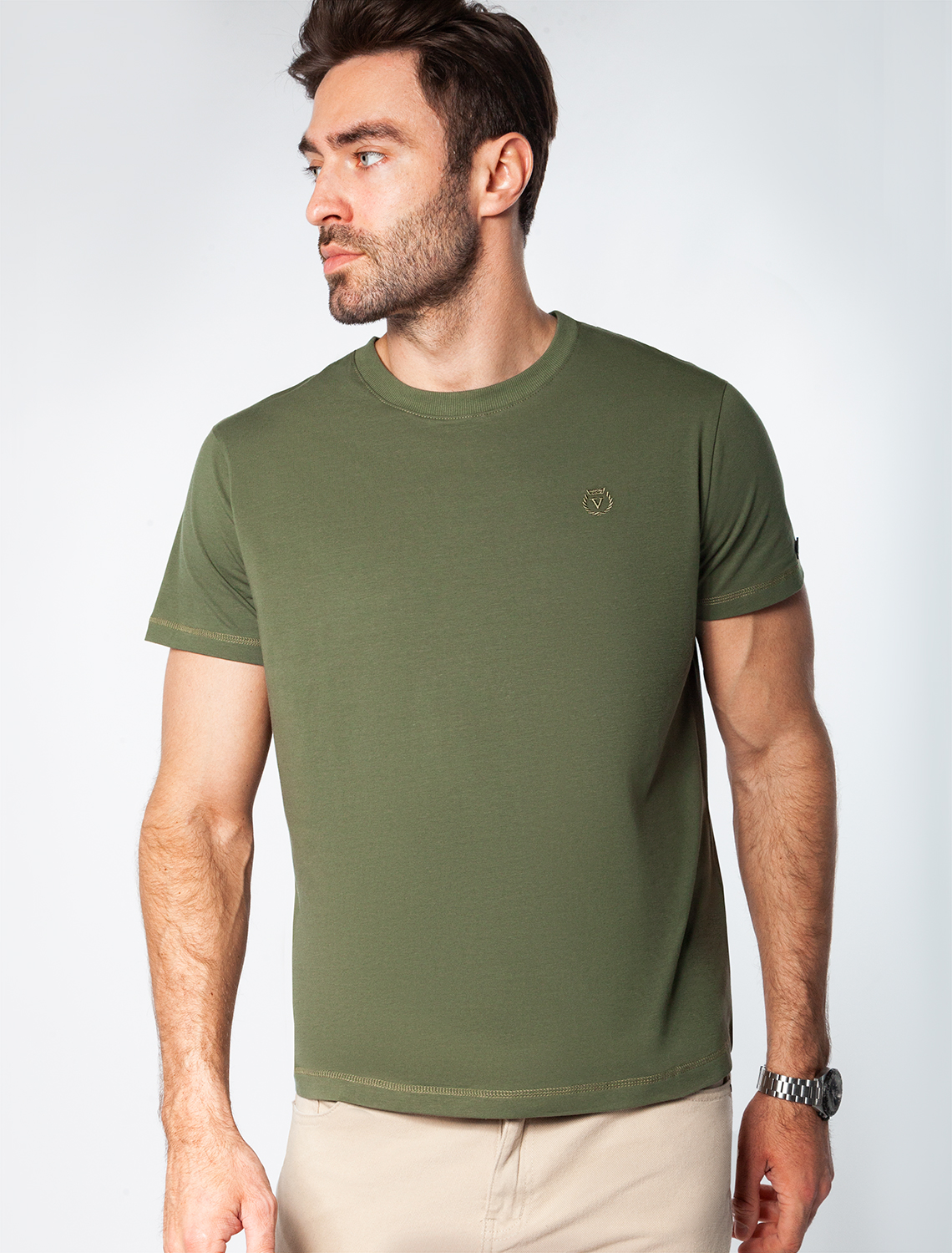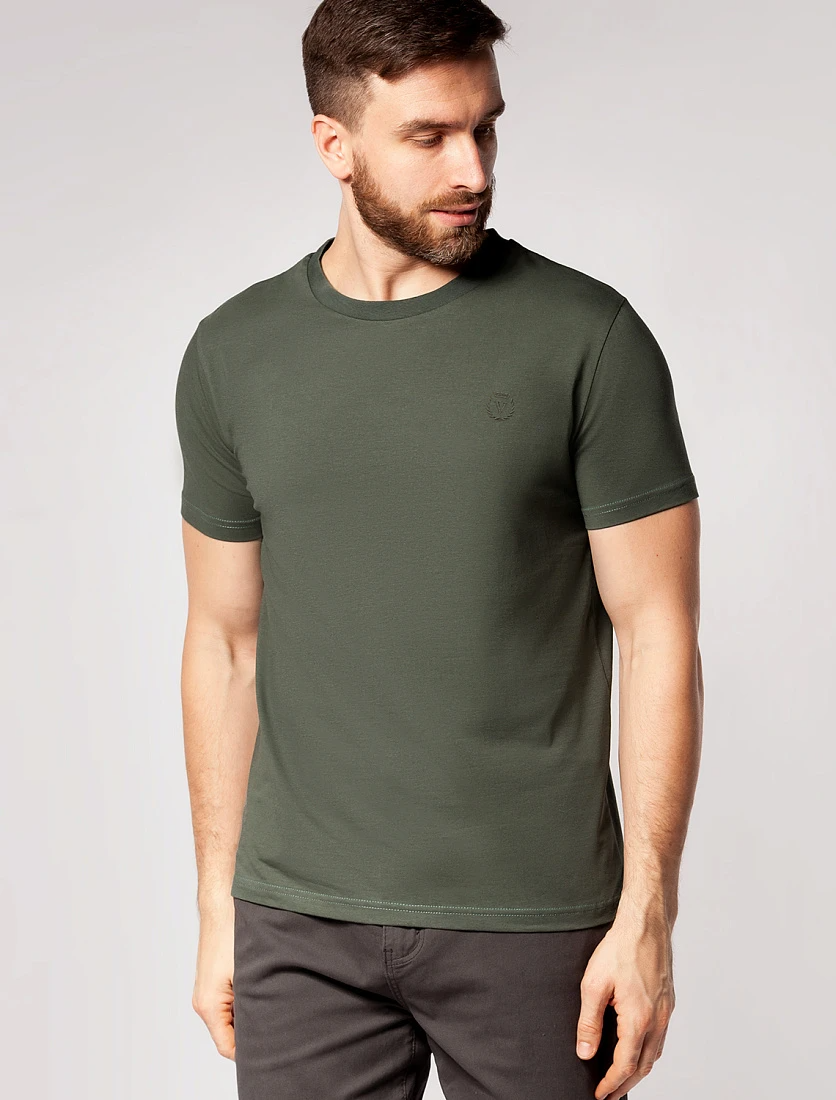 Базовая футболка цвета хаки из премиального хлопка с эластаном полуприлегающего кроя станет универсальным решением для любого случая. Прямой крой обеспечивает комфортную посадку на любую фигуру, включая большие размеры, подходит как на низкий, так и на высокий рост. Выполненная из натуральной ткани, она обладает дышащими свойствами, а за счет эластичности сохраняет форму даже после длительного ношения и многочисленных сирок.