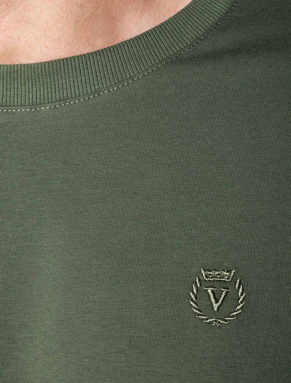 Однотонная футболка выполнена в минималистичном стиле, дополнена аккуратной вышивкой на груди в виде буквы V в тон изделия, а так нашивкой на рукаве из эко-кожи с логотипом VILATTE. Подходит как классический вариант для работы в офисе под пиджак, так и для повседневной носки или занятий спортом. Мягкая ткань приятна к телу, не вызывает дискомфорта и идеально подходит для дома или летних прогулок благодаря короткому рукаву.