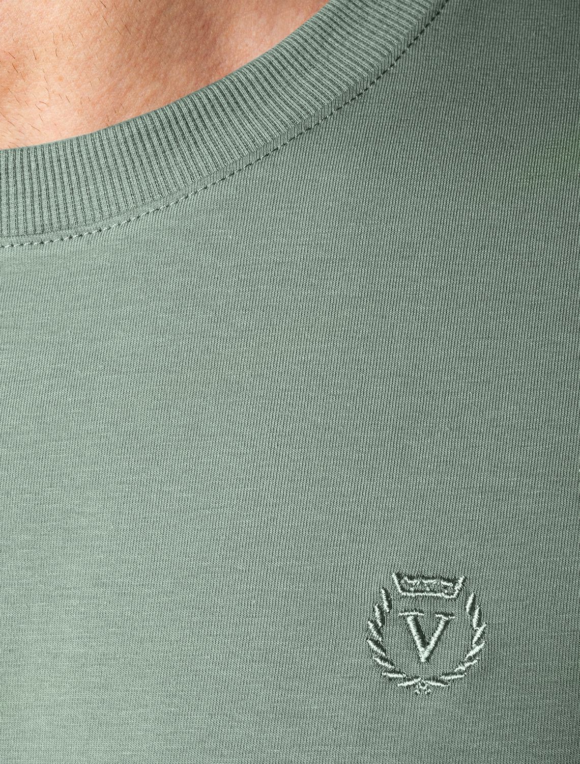 Однотонная футболка выполнена в минималистичном стиле, дополнена аккуратной вышивкой на груди в виде буквы V в тон изделия, а так нашивкой на рукаве из эко-кожи с логотипом VILATTE. Подходит как классический вариант для работы в офисе под пиджак, так и для повседневной носки или занятий спортом. Мягкая ткань приятна к телу, не вызывает дискомфорта и идеально подходит для дома или летних прогулок благодаря короткому рукаву.