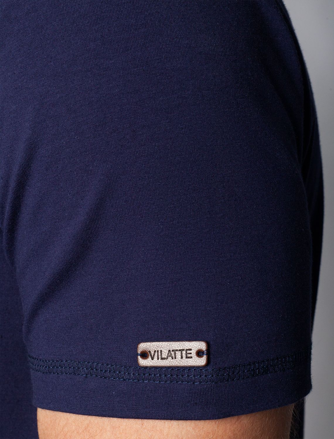 Однотонная футболка выполнена в минималистичном стиле, дополнена аккуратной вышивкой на груди в виде буквы V в тон изделия, а так нашивкой на рукаве из эко-кожи с логотипом VILATTE. Подходит как классический вариант для работы в офисе под пиджак, так и для повседневной носки или занятий спортом. Мягкая ткань приятна к телу, не вызывает дискомфорта и идеально подходит для дома или летних прогулок благодаря короткому рукаву.