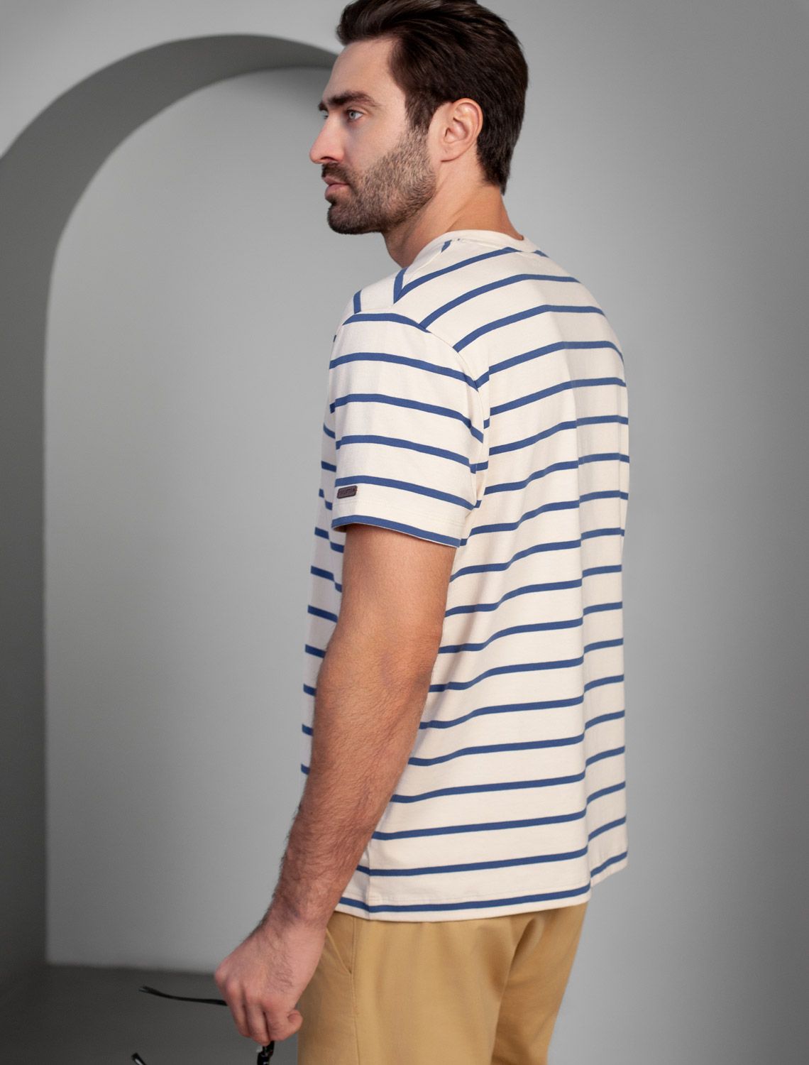 Футболка из премиального хлопка с эластаном U49.024 экрю-св-синий