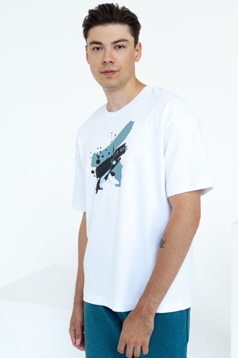 Футболка из натурального хлопка (интерлок) с круглым вырезом горловины свободного силуэта и со спущенным рукавом. Модель декорирована тематическим принтом. Футболка миксуется с брюками и шортами Almando Melado, а так же с любыми джинсами из личного гардероба.