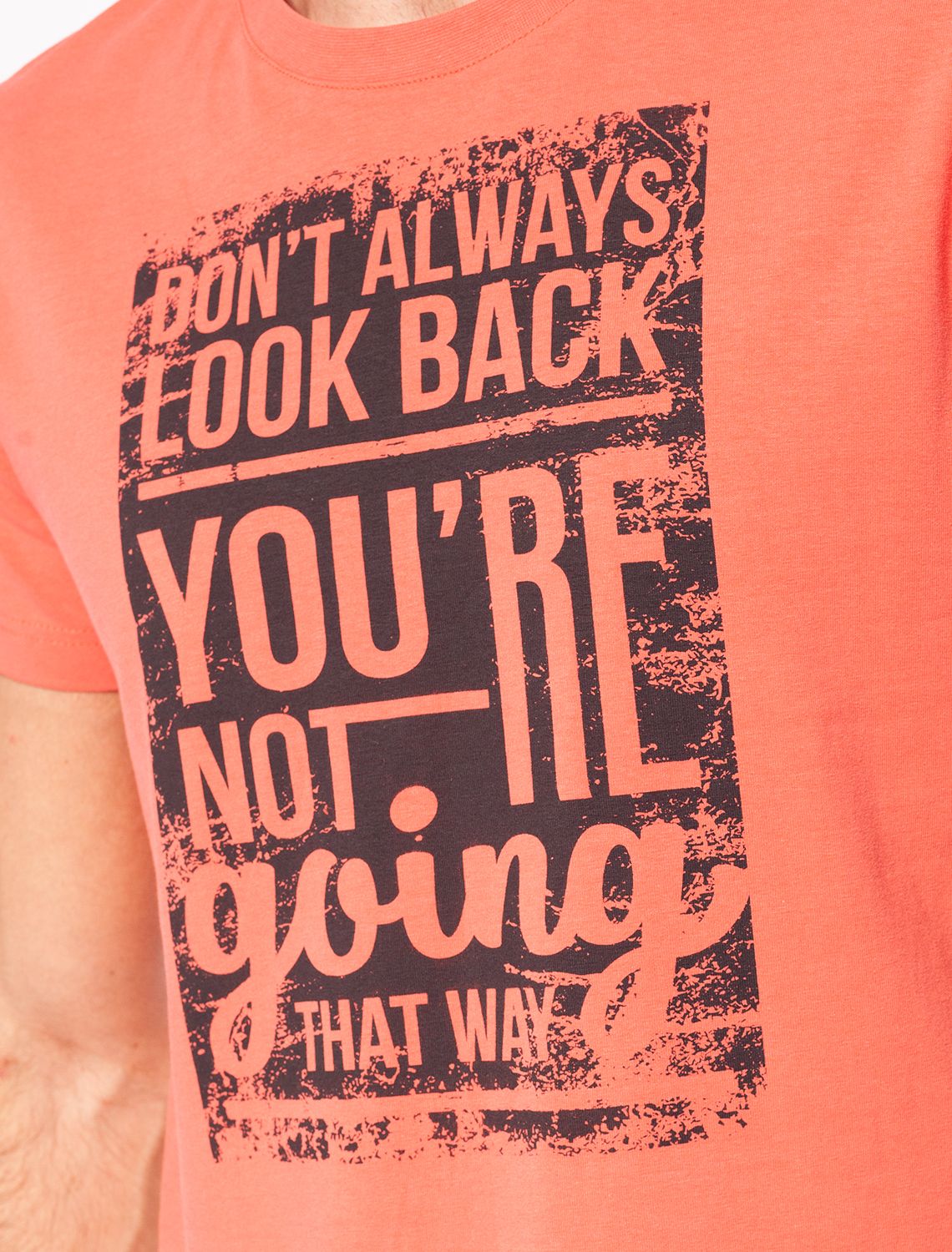 Футболка из хлопка. Для пошива модели с круглой горловиной использовали мягкое хлопковое полотно с характерной эластичной структурой. Авторский принт выполнен красками с устойчивым покрытием. Самое высокое качество хлопковых волокон с добавлением эластана. Идеально держит форму и сохраняет внешний вид в течение долговременного использования. коралловый_dont_look_back