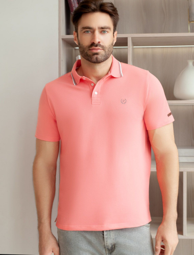 Футболка-поло из фактурного трикотажа U49.012 коралл