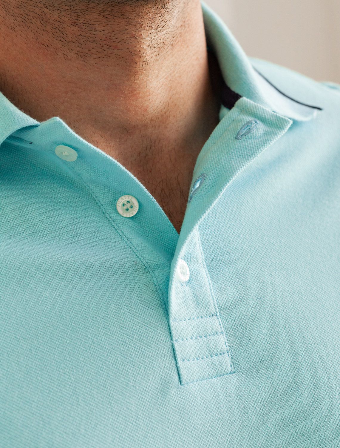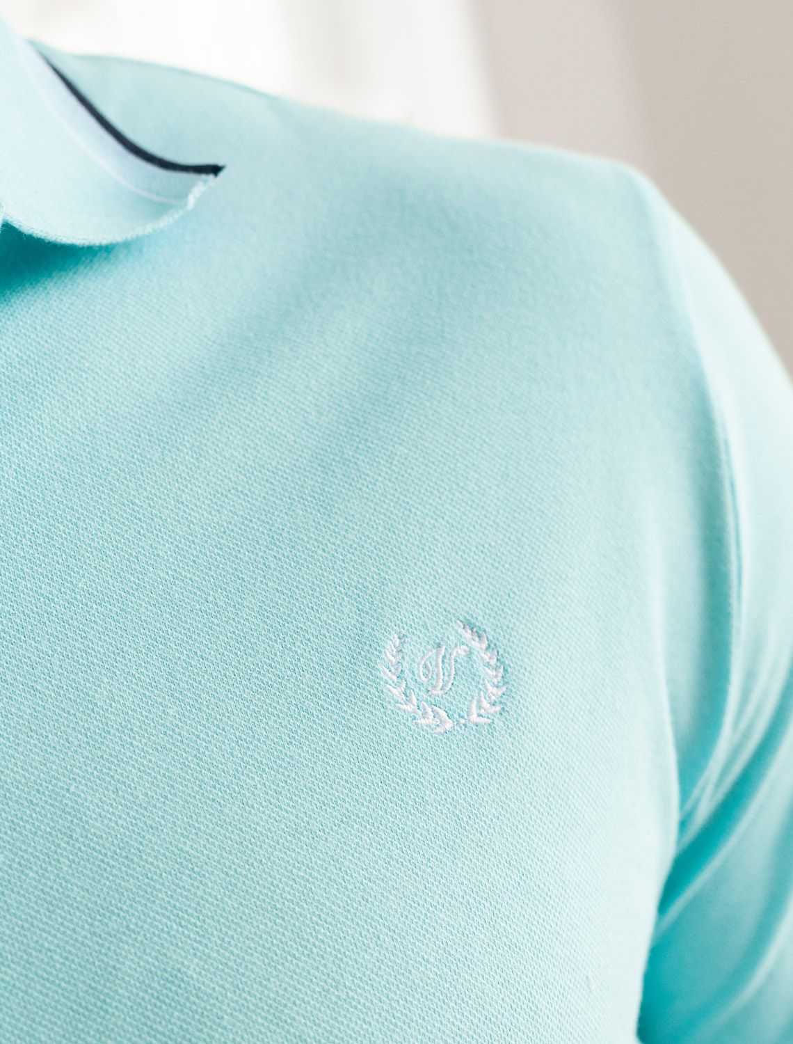 Футболка-поло из фактурного трикотажа U49.012 лазурно-голубой с полосой
