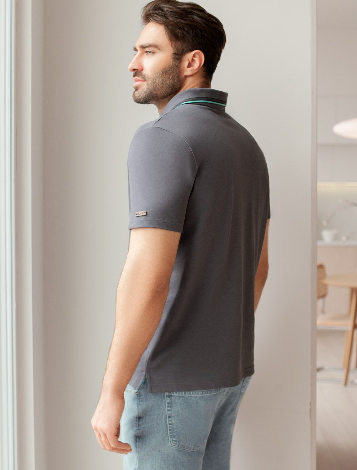 Футболка-поло из фактурного трикотажа U49.012 т.серый