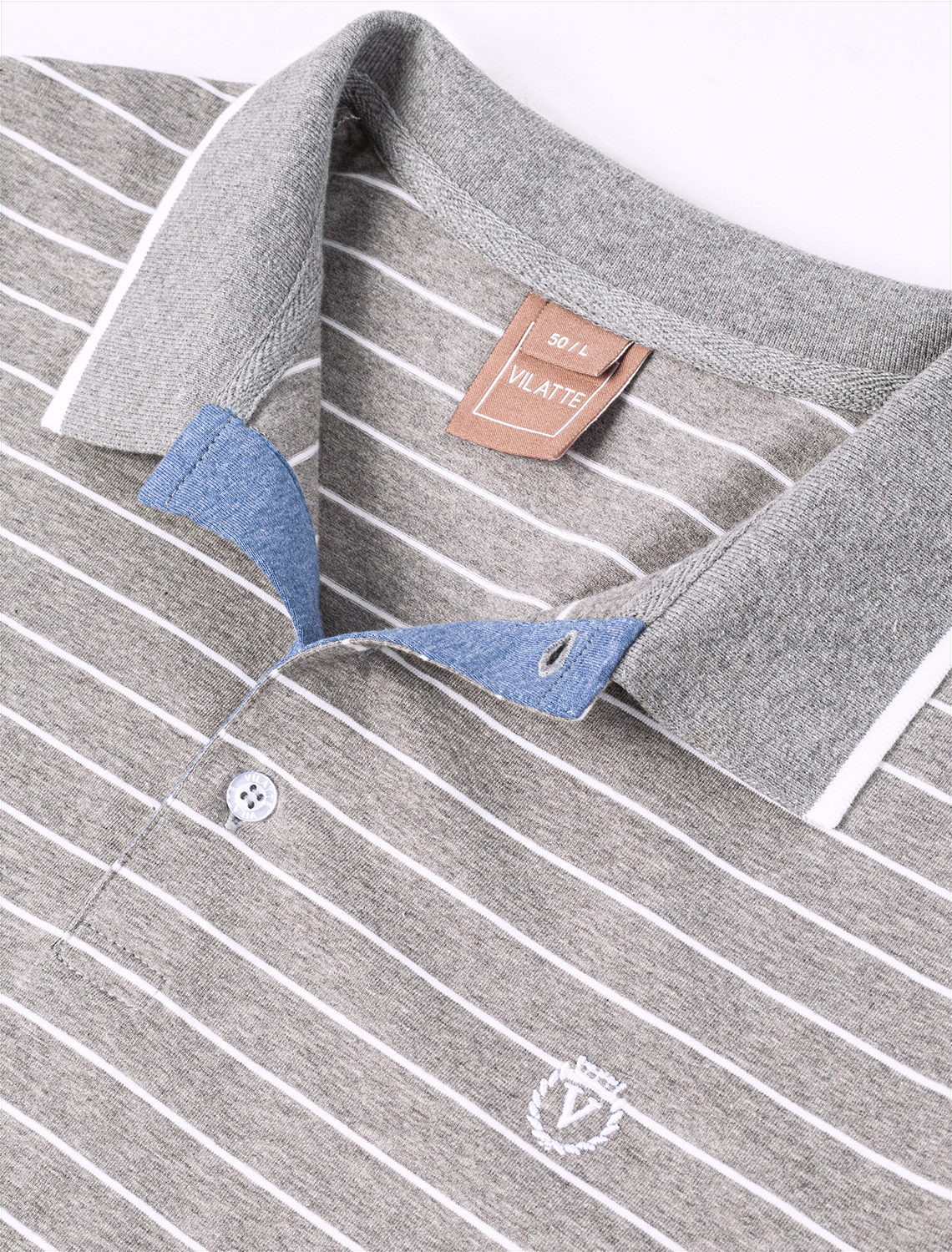 Ст.цена 1890р Футболка-Поло из премиального хлопка с эластаном U49.025 белый-серый