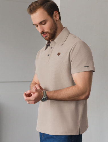 Светло-синее прямое поло выполнено из премиального хлопка пике с характерной фактурой, которая обеспечивает эффективную циркуляцию воздуха. Деликатный акцент в модели выполнен в виде контрастного отложного воротника. Наличие эластана в составе изделия способствует эластичности и меньшей сминаемости. Внизу металлический логотип бренда. светло-синий