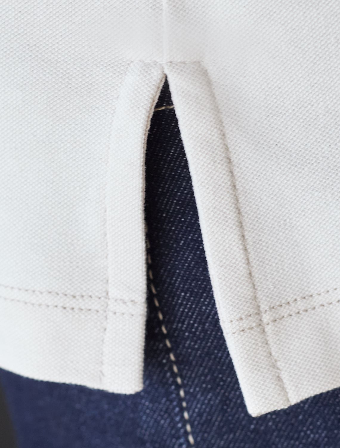 Стильная футболка поло белого цвета с отложным воротником на пуговицах выполнена из премиального хлопка с добавлением элатана. Мягкая и дышащая ткань плотностью 200 Г/м2 обеспечивает комфорт в течение всего дня, позволяя коже дышать и поддерживать оптимальную воздухопроницаемость. Классический крой поло подойдет на разные комплекции фигуры, в том числе большие размеры, включая 58. Материал тянется, обеспечивает долговечность и сохраняет презентабельный внешний вид даже после многократных стирок. Плетеный воротник добавляет образу стиль old money, а аккуратная нашивка на груди в виде логотипа бренда подчеркивает статусность футболки поло. По бокам аккуратные разрезы для свободы движений и дополнительного удобства. Повседневная футболка подходит для любых ситуаций — от деловых встреч до повседневных прогулок. Такая вещь станет универсальным решением для тех, кто ценит удобство и элегантность в одежде. Лаконичный дизайн футболки с коротким рукавом легко сочетается с различными низами, что позволяет создавать разные образы.