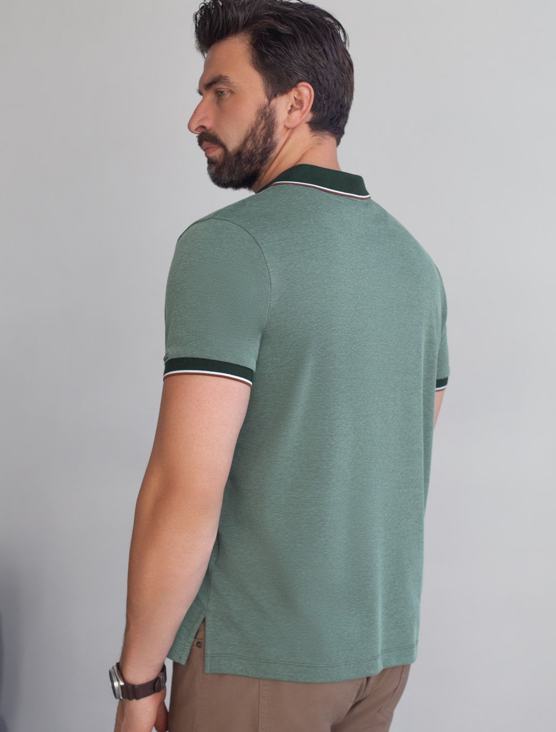 Футболка поло с воротником на пуговицах из полотна пике с меланжевым плетением с эластаном U49.042 хаки меланж