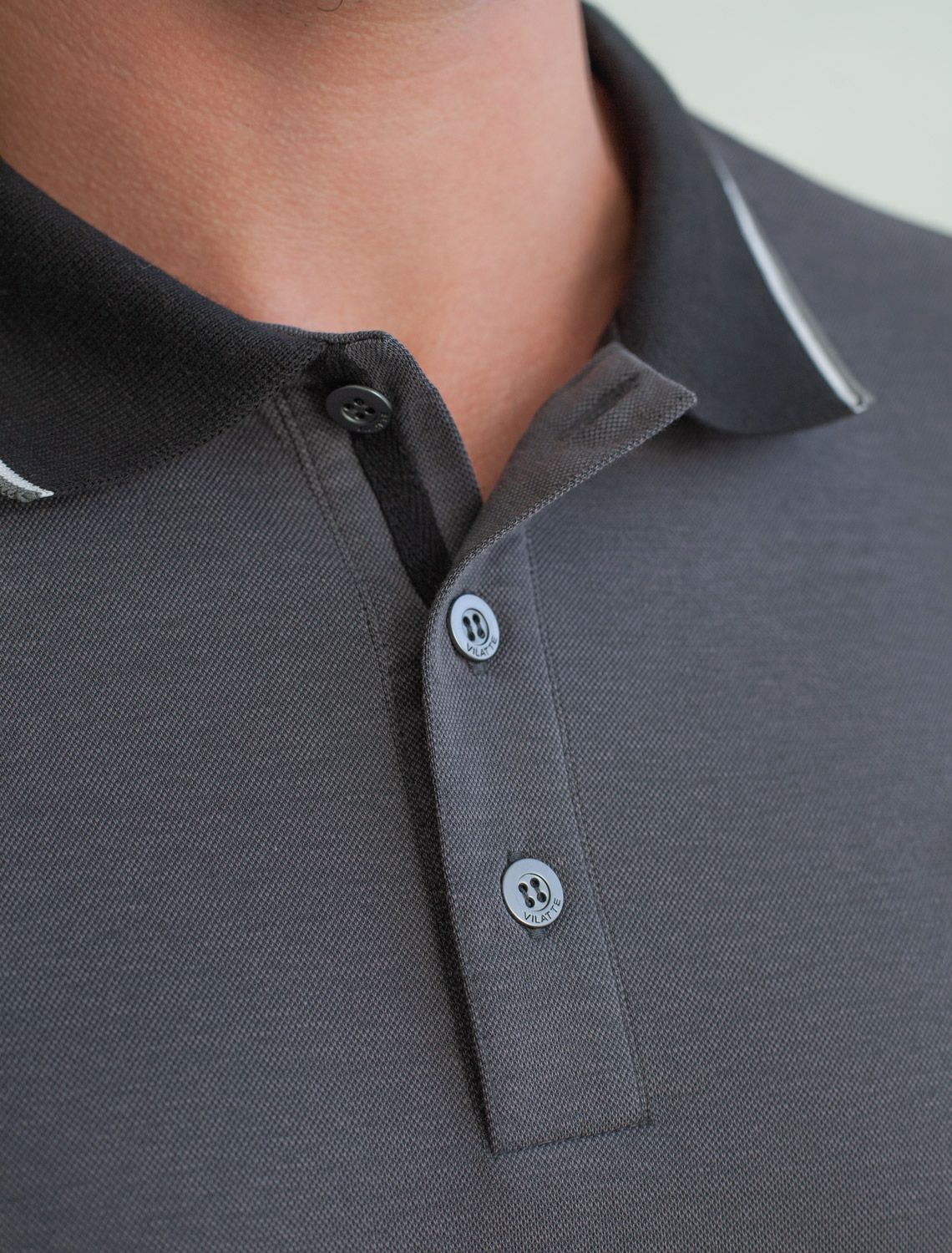 Стильная футболка поло с отложным воротником на пуговицах серого цвета выполнена из полотна пике из двух оттенков нити, создающем эффект меланж. Мягкая и дышащая ткань обеспечивает комфорт в течение всего дня, позволяя коже дышать и поддерживать оптимальную воздухопроницаемость. Классический крой поло подойдет на разные комплекции фигуры, в том числе большие размеры, включая 58. Материал тянется, обеспечивает долговечность и сохраняет презентабельный внешний вид даже после многократных стирок.