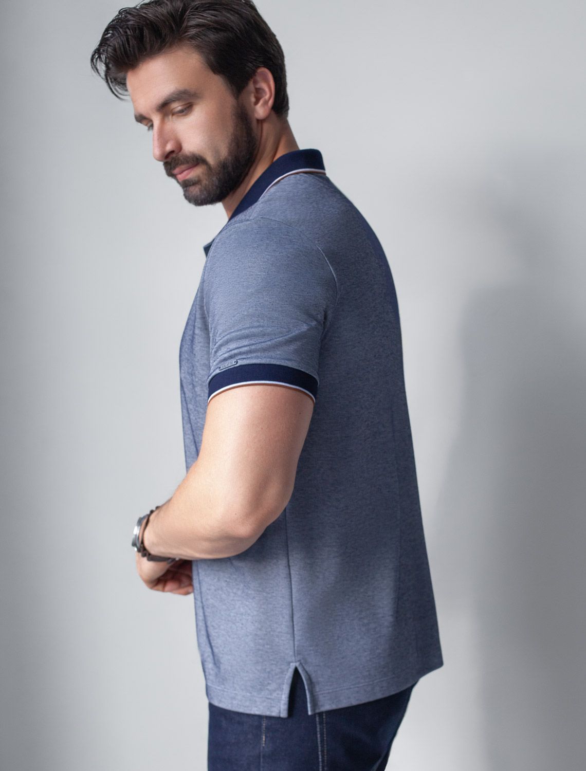 Контрастные линии на воротнике и рукавах добавляют образу стиль old money, а аккуратная нашивка на груди в виде логотипа бренда подчеркивает статусность футболки поло. По бокам аккуратные разрезы для свободы движений и дополнительного удобства.