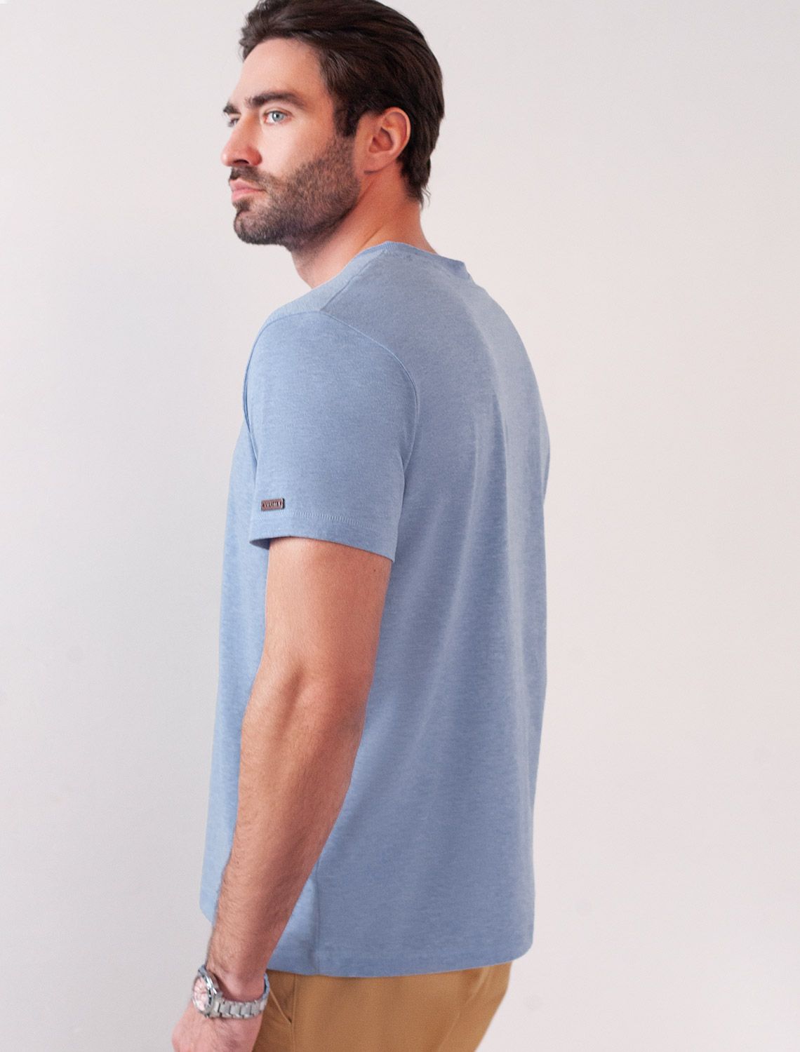 Футболка голубого цвета с эффектом меланж из премиального хлопка с эластаном плотностью 170 Г/м2 станет универсальным решением для любого случая. Эффект неоднородного цвета ткани (меланж) достигается путем смешивания волокон разных оттенков. Прямой крой обеспечивает комфортную посадку на любую фигуру, включая большие размеры, подходит как на низкий, так и на высокий рост. Благодаря сочетанию натурального хлопка и эластана, ткань отлично дышит и слегка тянется, сохраняя форму после стирок. Футболка выполнена в минималистичном стиле, дополнена принтом в виде изображения компаса и надписи. Перевод надписи: Outdoors lyfe style - Образ жизни на природе. На рукаве нашивка из эко-кожи с логотипом VILATTE. Подходит как классический вариант для работы в офис, так и для повседневной носки или занятий спортом. Мягкая ткань приятна к телу, не вызывает дискомфорта и идеально подходит для дома или летних прогулок. Простая и практичная футболка с коротким рукавом станет базовым элементом вашего гардероба. Она легко сочетается в спортивном или классическом стиле.