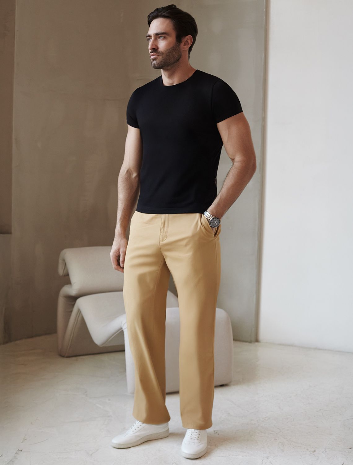 Футболка силуэта slim fit выполнена из премиального хлопка. Мягкая хлопковая ткань приятно ощущается на коже и хорошо пропускает воздух. Ткань содержит эластан, за счет чего тянется и хорошо сидит по фигуре. Не теряет форму после многократных стирок и сохраняет форму в течении долгого времени. Базовая модель дополнена сбоку вшитым логотипом бренда из эко-кожи.