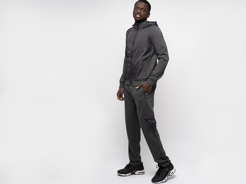 подчеркивает уникальность модели. Спортивные брюки выполнены в современном