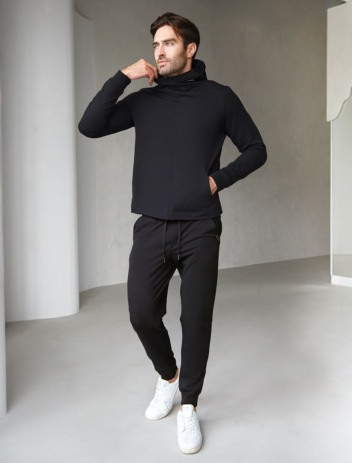 Ст.цена 2290р Худи из эластичного футера двунитки U49.035 черный