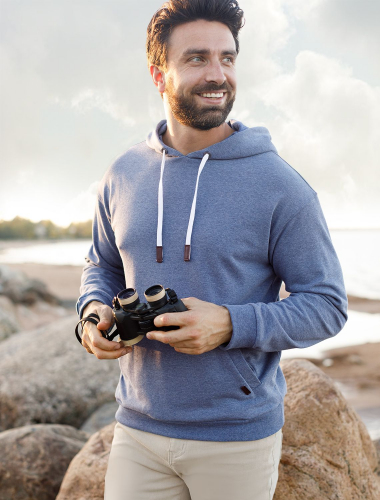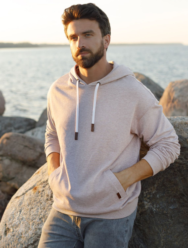 Худи выполнено из эластичного футера трехнитки-петля с эффектом меланж. Лаконичная модель с капюшоном и двумя боковыми карманами дополнена хлопковым шнуром с наконечниками из эко-кожи. Наличие эластана в составе гарантирует комфорт и формоустойчивость. Изделие не сковывает движений. В теплое время года можно использовать вместо верхней одежды.