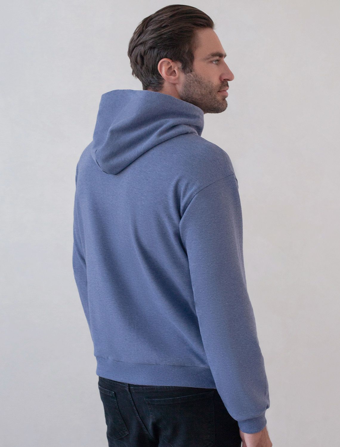 Худи из эластичного футера трехнитки с эффектом меланж U49.039 синий меланж