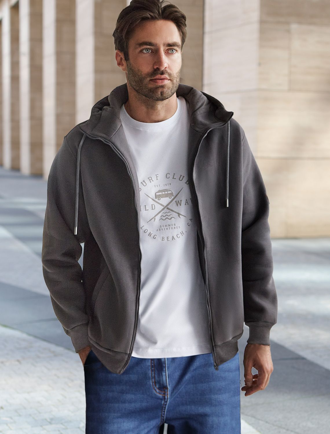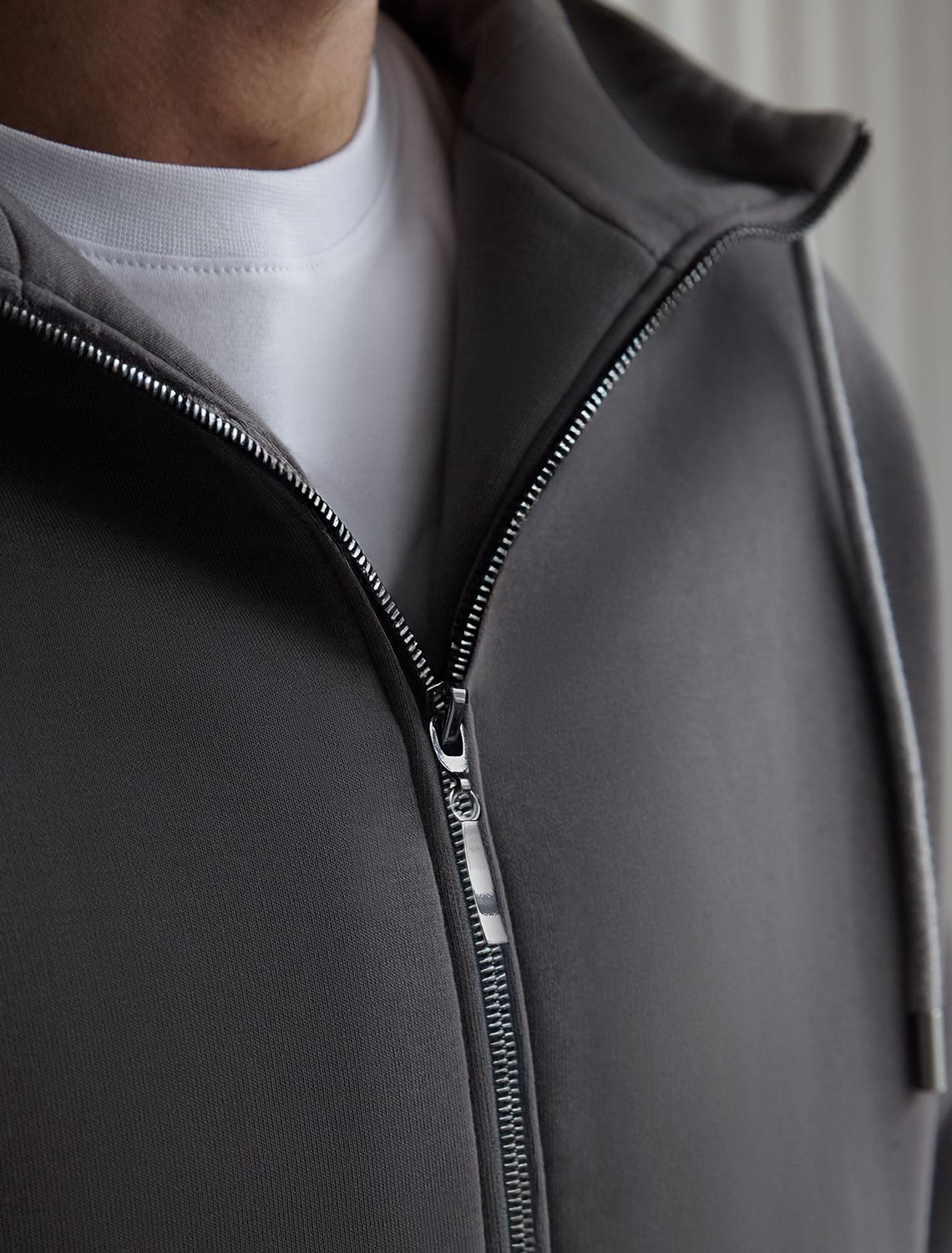 Ст.цена 3990р Худи на молнии из премиального футера трехнитки с начесом U49.037 серый