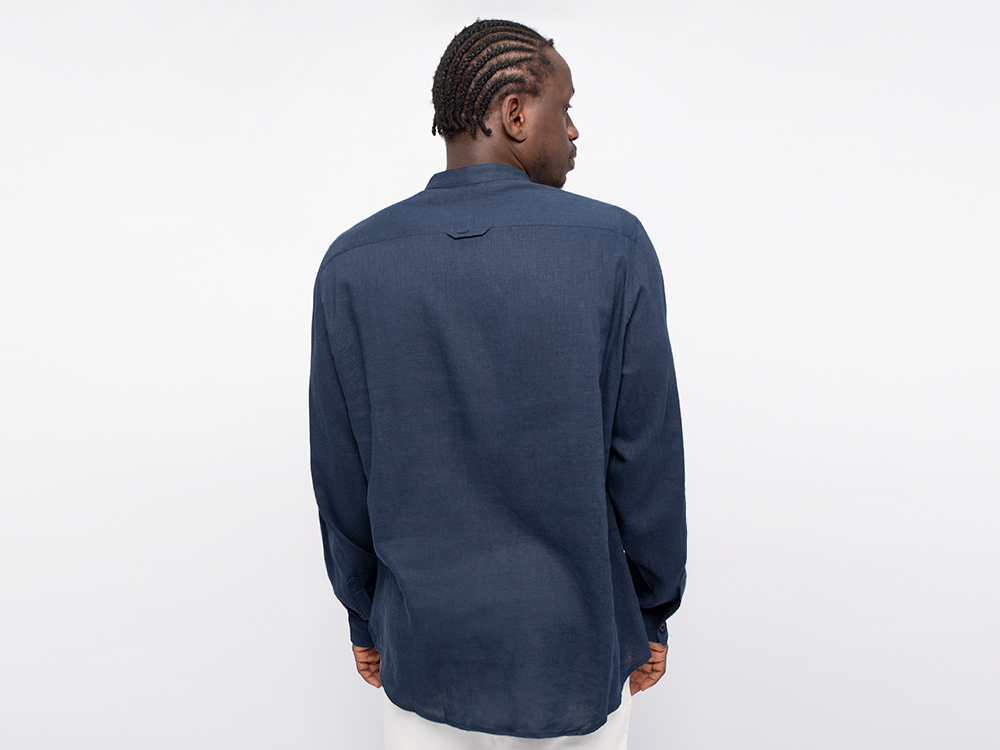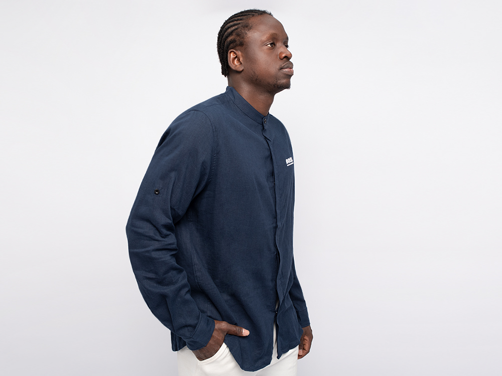 с застежкой на пуговицы, воротником – мандарин, длинным, подкатным рукавом.