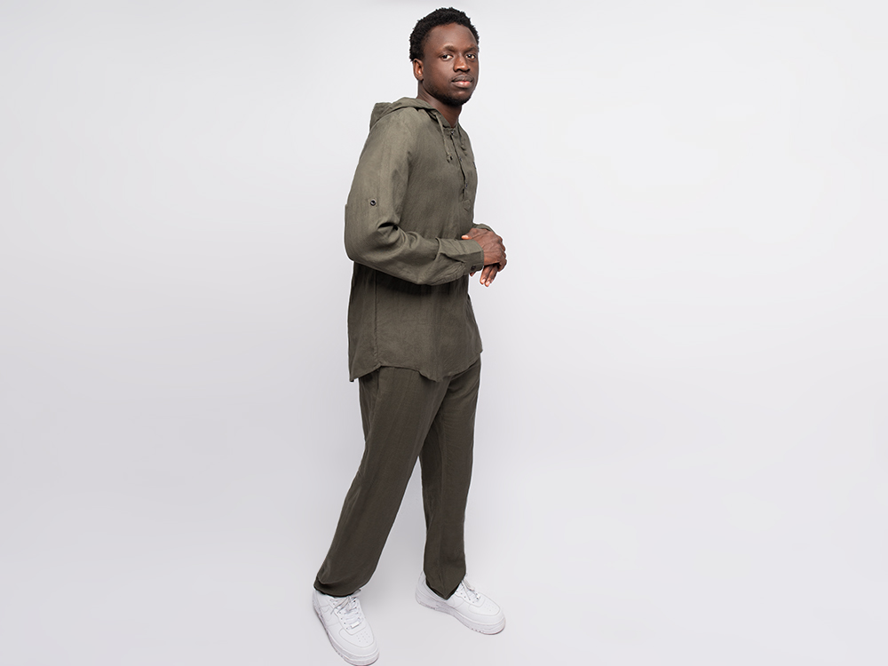 Свободный крой не сковывает движений. Брюки прямого кроя, прорезными карманами по бокам