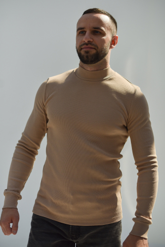 Классическая базовая водолазка выполнена из эластичного трикотажного полотна «кашкорсе». Водолазка с длинным втачным рукавом с манжетой по низу. Воротник - стойка.