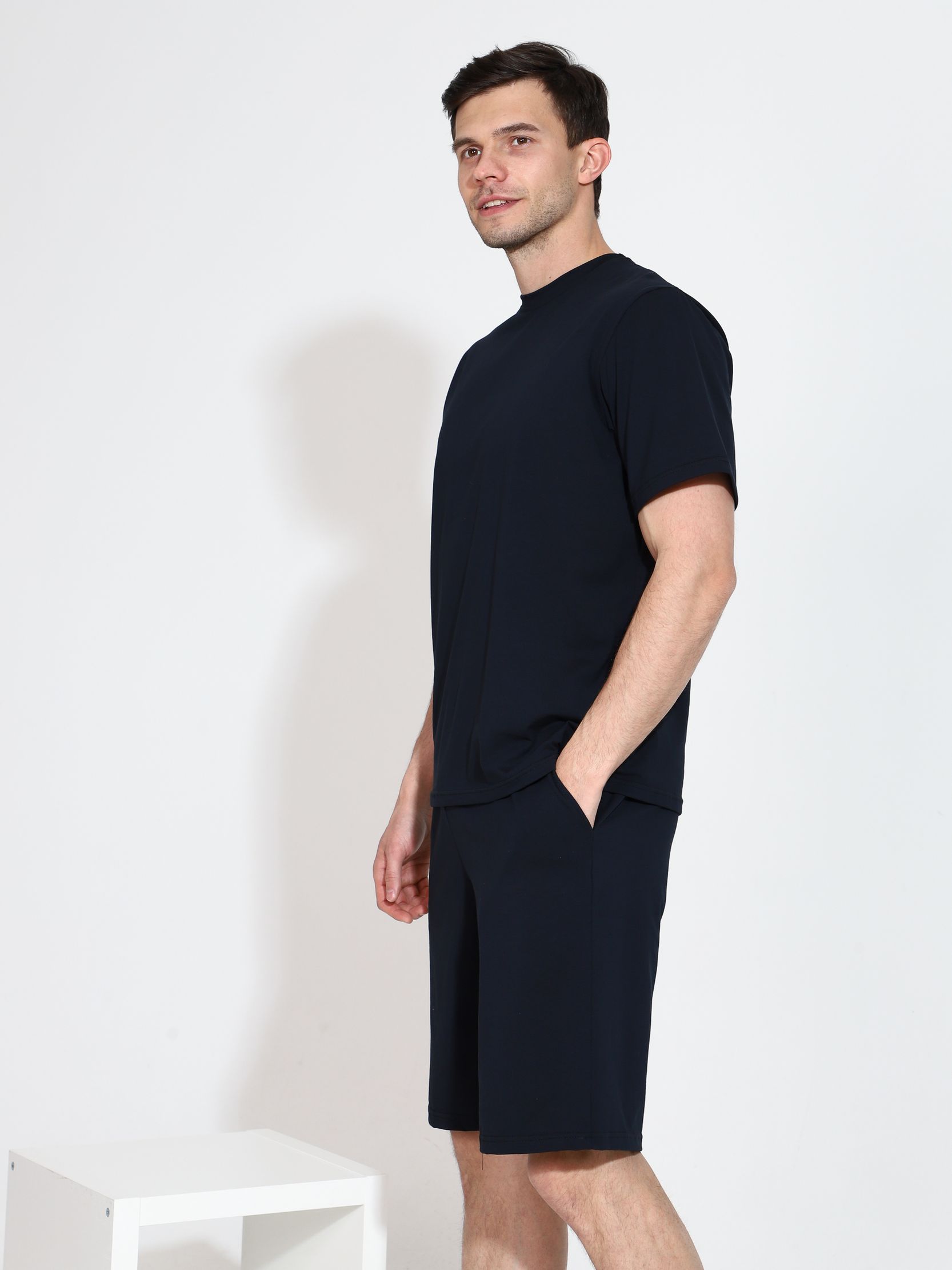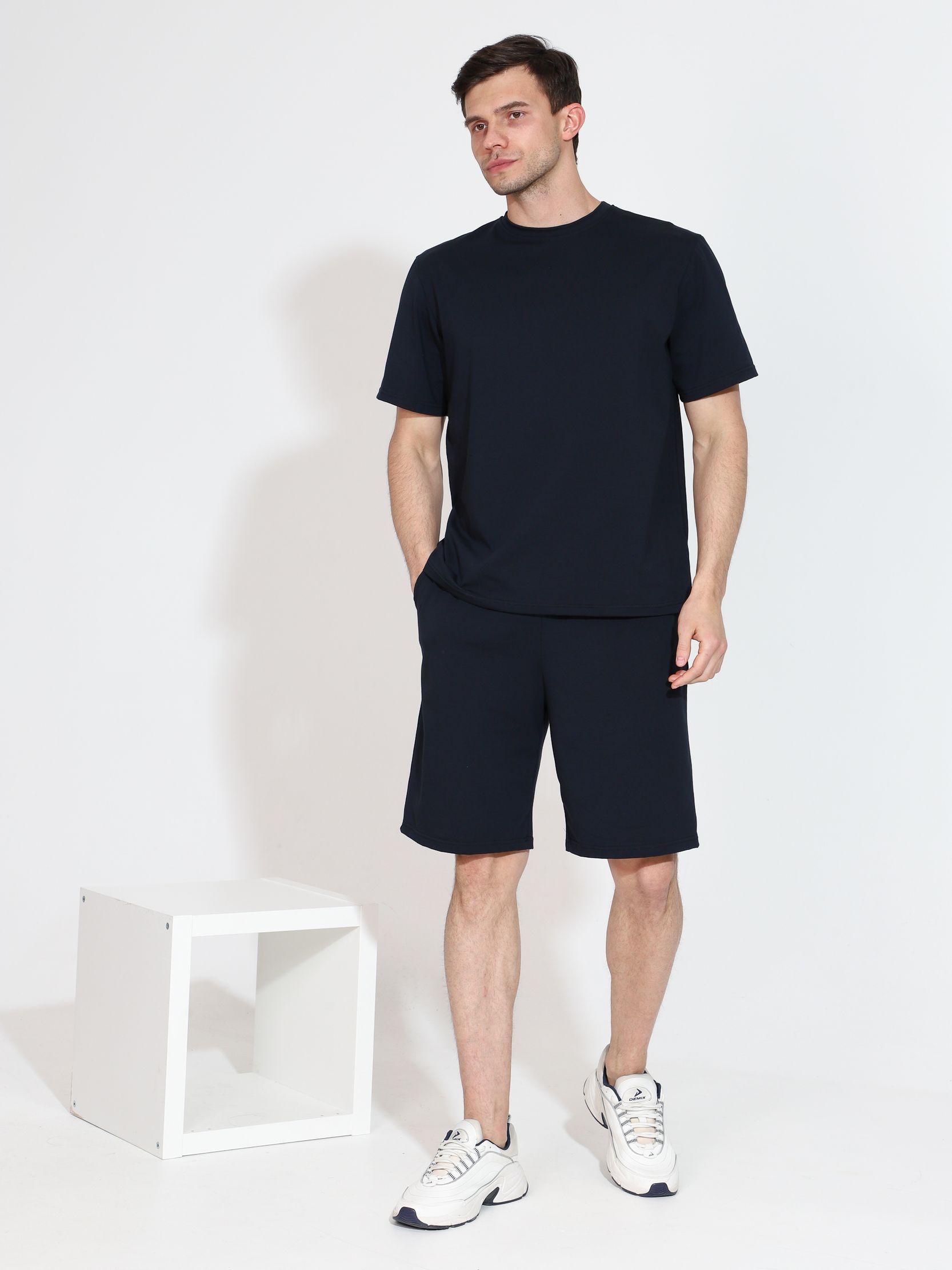 Мужской костюм состоит из футболки и шорт. Футболка свободного кроя с круглым вырезом горловины. Шорты - бермуды свободного кроя, с боковыми карманами