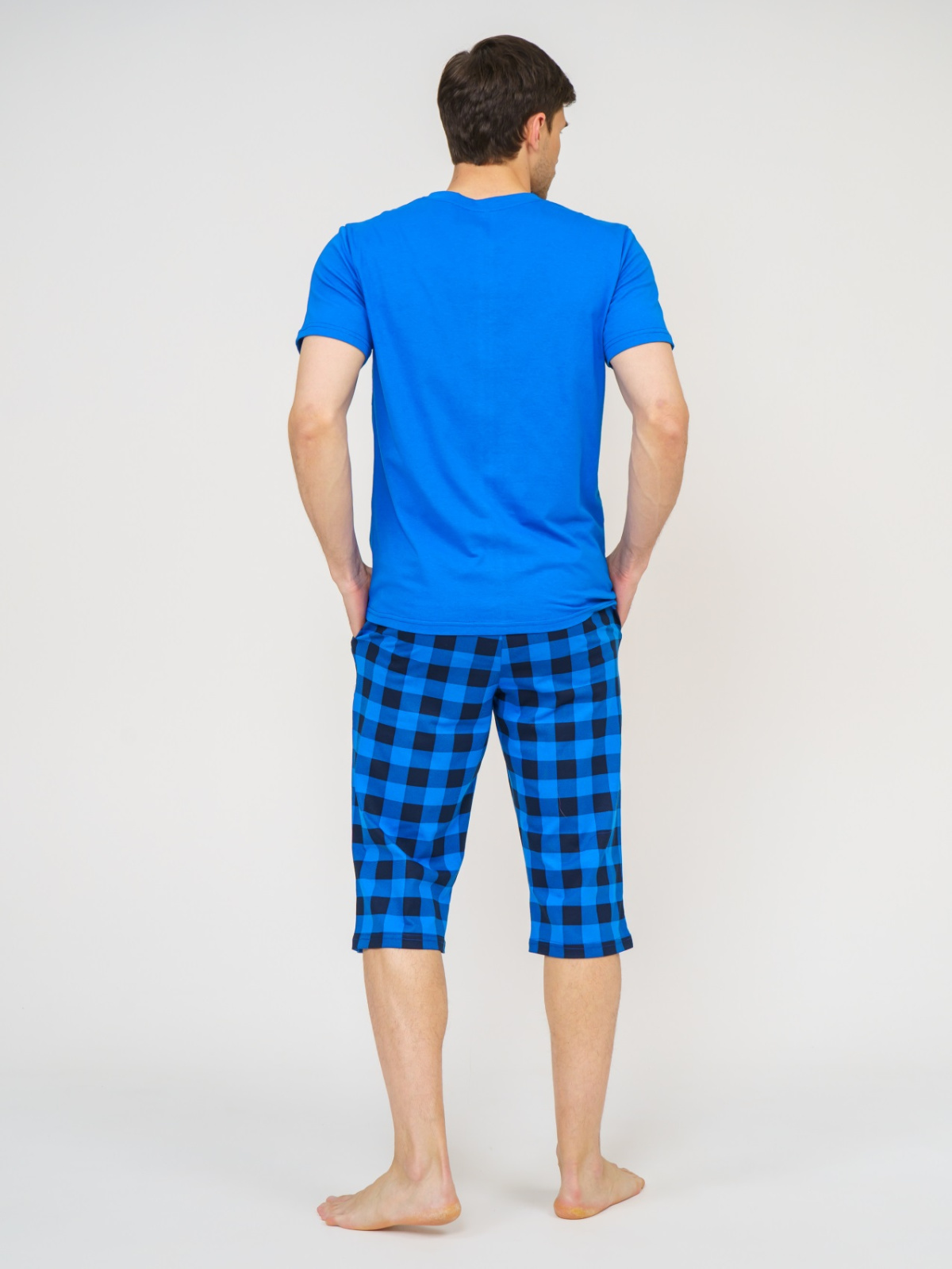 Стильный и удобный мужской домашний костюм отличный вариант одежды на все случаи жизни. Комплект для дома с футболкой и шортами сшит из материала, в составе которого 100% хлопок. Удобные и дышащие бриджи с двумя карманами и средней посадкой. У них универсальная длина, поэтому этот комплект смело можно носить не только как домашний, но или как пляжный или спортивный костюм. Яркая однотонная футболка без лишних элементов отделки порадует мужчин своим удобством и комфортом. Классический крой Футболки с коротким рукавом и круглым вырезом подойдет любому типу фигуры и любому возрасту.