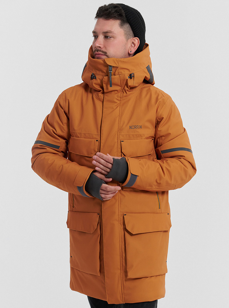 Мужская зимняя утепленная куртка с утеплителем 200 гр/м2 из мембранной ткани. Непромокаемая (уровень непромокаемости 15 000 мм) и ветронепродуваемая. Паропроницаемость 10 000 г/м2/24 ч Крой: Прямой Посадка: Классическая Ткань: 92% Нейлон, 8% Полиуретан Длина по спинке р-ра М: 92 см.