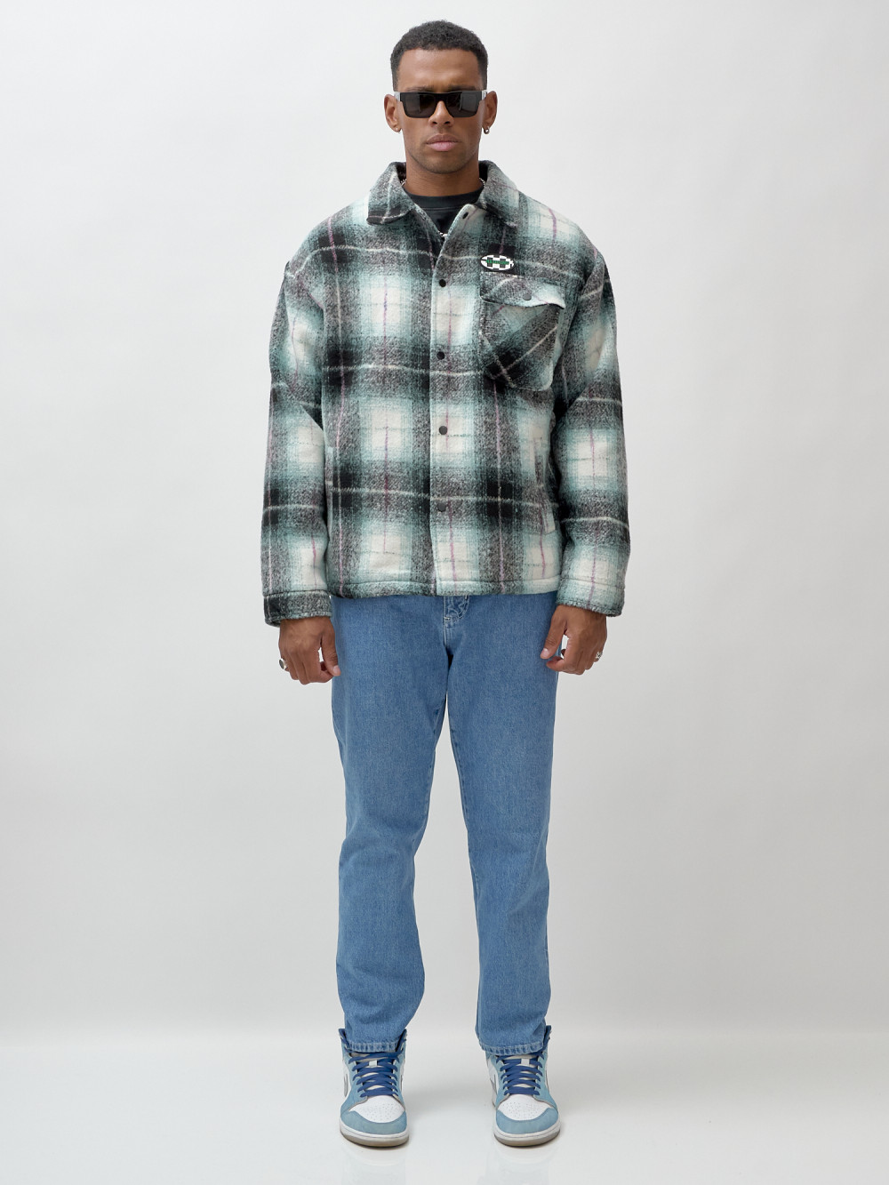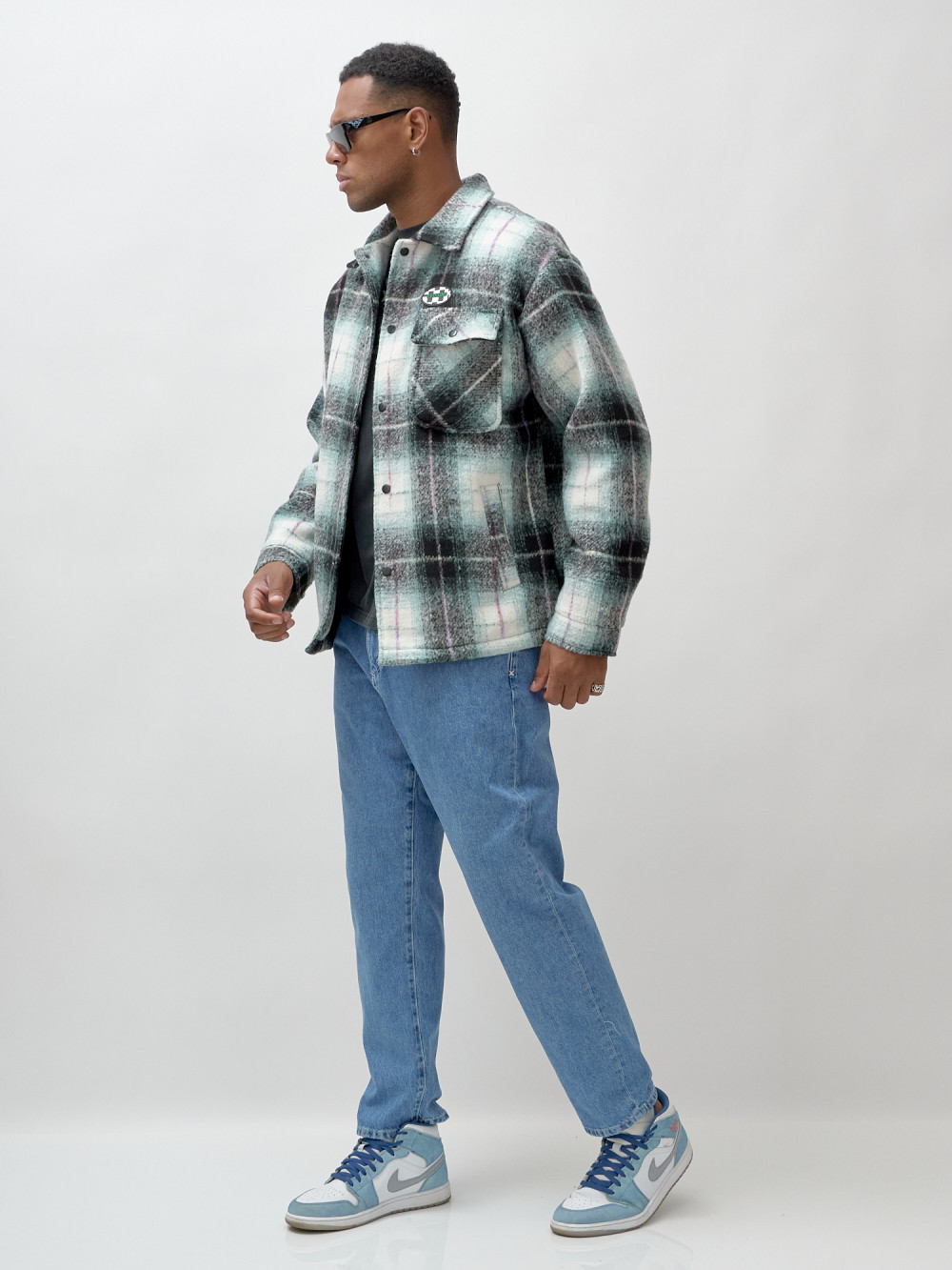 Куртка рубашка шерстяная в клетку мужская демисезонная зеленого цвета 58592Z