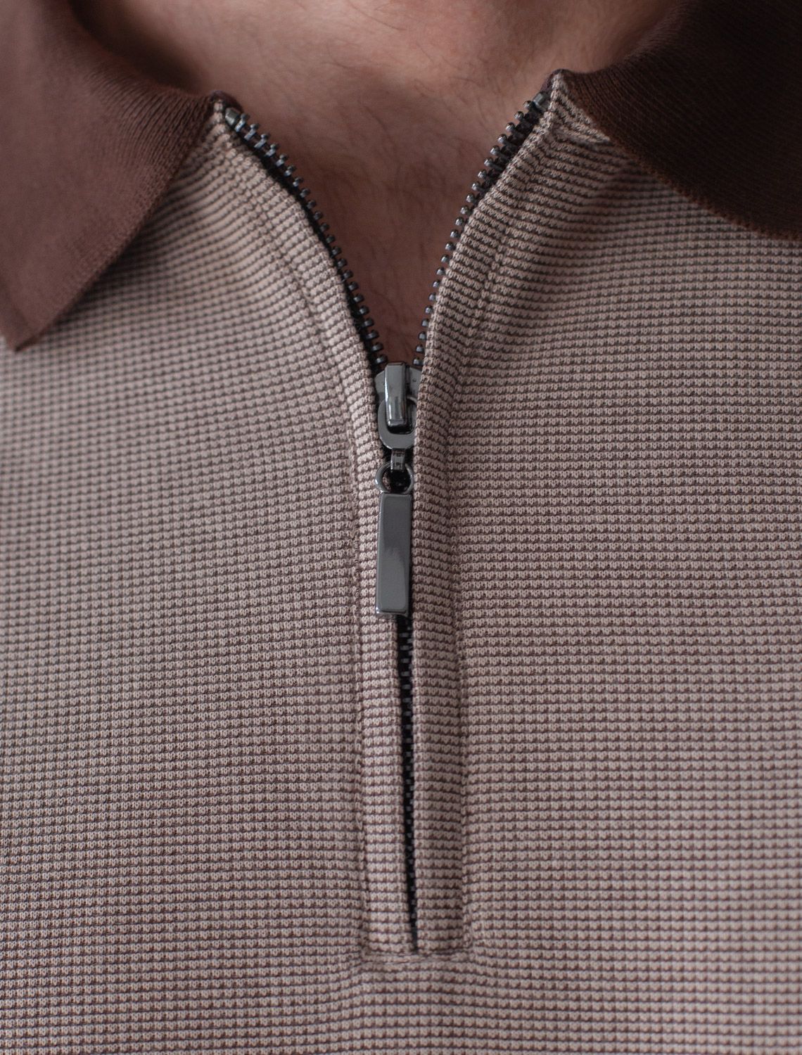 Стильный лонгслив коричневого цвета с плетеным воротником поло с застежкой на молнию выполнен из премиального хлопка в сочетании с эластаном .Невероятно мягкая ткань из натуральных волокон - она едва ощутима на коже и словно обнимает тело. Материал при касании кажется бархатистым, при движении он словно повторяет все мельчайшие линии фигуры. По свойствам материал сочетает в себе практичность и нежность: отлично провускает воздух, сохраняя ощущение свежести в течение всего дня, при этом созраняет тепло в прохладную погоду.Идеально подходит для чувствительной кожи, не вызывает раздражения и дискомфорта. Удобный отложной контрастный воротник делает образ современным и стильным, а длинные рукава с манжетами защищают руки при ветреной погоде.