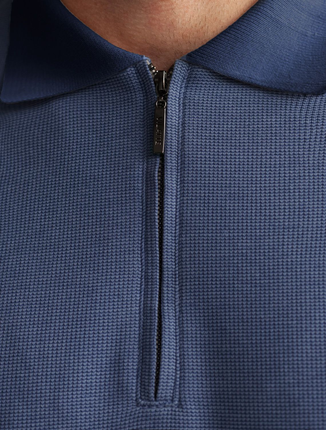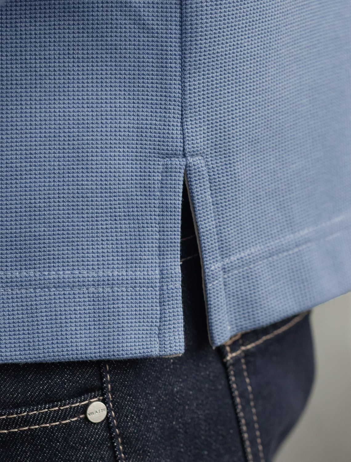 Стильный лонгслив светло-синего цвета с плетеным воротником поло с застежкой на молнию выполнен из премиального хлопка в сочетании с эластаном .Невероятно мягкая ткань из натуральных волокон - она едва ощутима на коже и словно обнимает тело. Материал при касании кажется бархатистым, при движении он словно повторяет все мельчайшие линии фигуры. По свойствам материал сочетает в себе практичность и нежность: отлично провускает воздух, сохраняя ощущение свежести в течение всего дня, при этом созраняет тепло в прохладную погоду.Идеально подходит для чувствительной кожи, не вызывает раздражения и дискомфорта. Удобный отложной воротник делает образ современным и стильным, а длинные рукава с манжетами защищают руки при ветреной погоде.