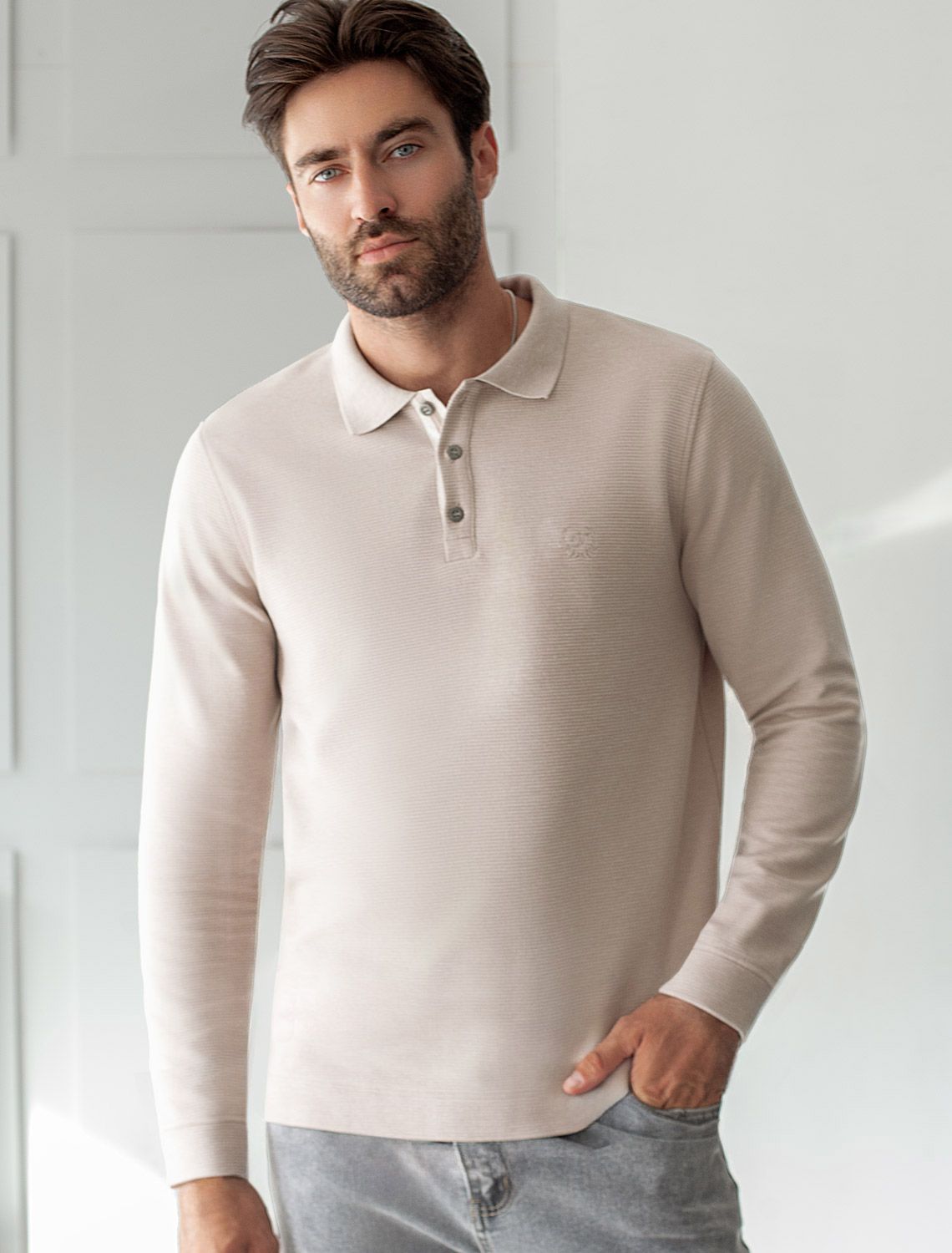 Поло хорошо садится по фигуре благодаря добавлению эластичных волокон — такой вариант подходит для мужчин любого роста и размеров, не стесняет движений и создает ощущение свободы и легкости. Лонгслив с пуговицами дополнен ненавязчивой вышивкой на груди в виде логотипа бренда в тон основному цвету, которая придает образу индивидуальность, не перегружая его лишними акцентами. Лаконичная вышивка служит оригинальным декоративным элементом, гармонично вписываясь в общий минималистичный облик. Такой подход делает лонг универсальным решением для тех, кто ценит простоту и стремится подчеркнуть свой вкус через детали.