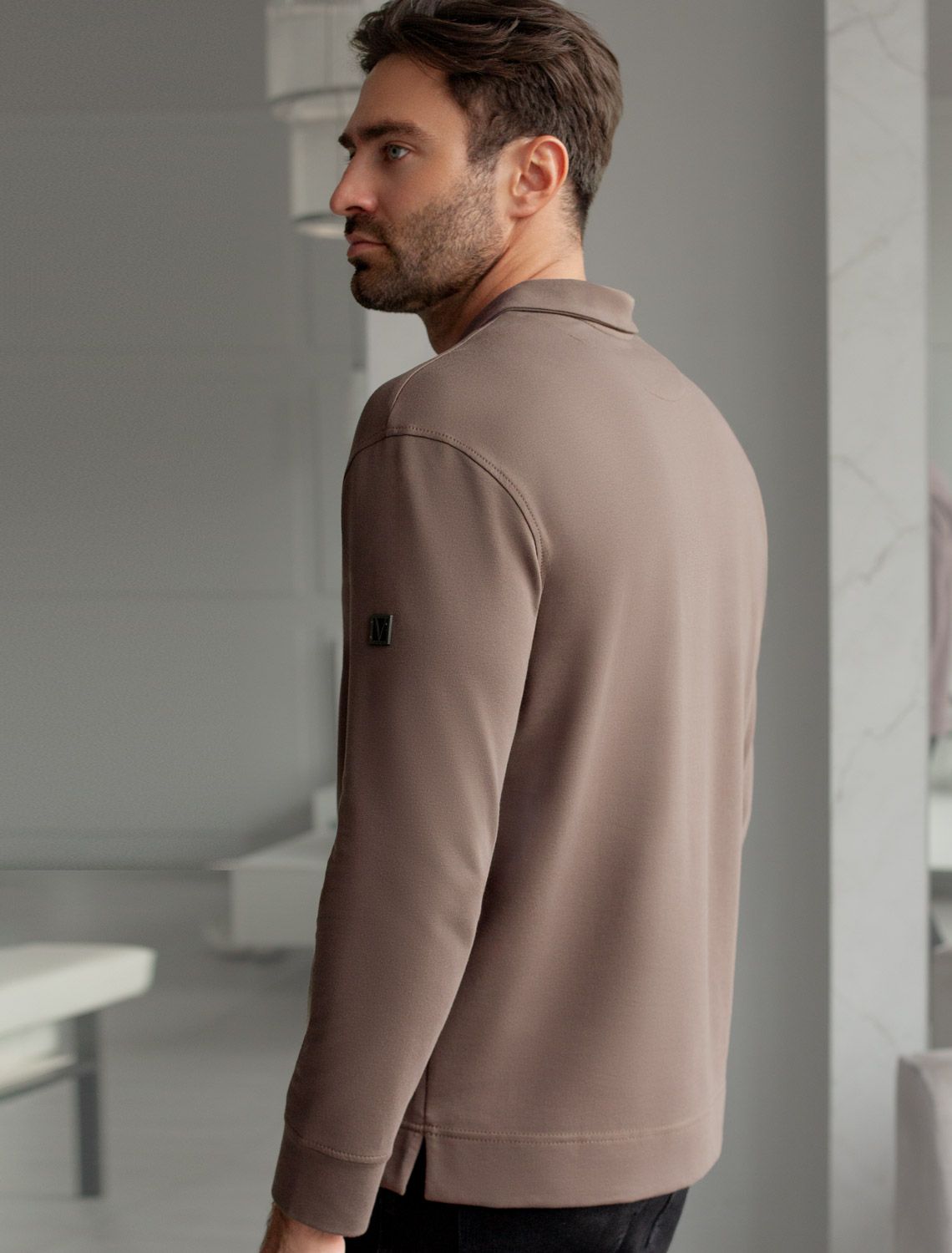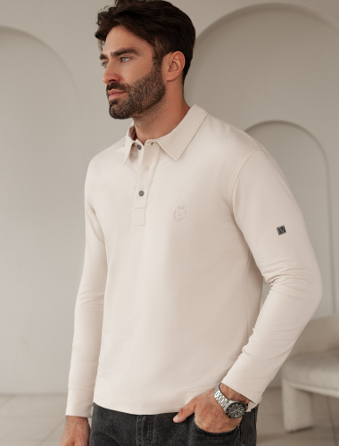 Стильный лонгслив кофейного цвета с воротником поло выполнен из премиального хлопка в сочетании с эластаном . Натуральная ткань обеспечивает легкость, воздухопроницаемость и приятные тактильные ощущения даже когда жарко, позволяет не перегреваться и поддерживает комфортный микроклимат в течение всего дня. Удобный отложной воротник на аккуратных пуговицах делает образ современным и стильным, а длинный рукав защищает руки при ветреной погоде. Поло хорошо садится по фигуре благодаря добавлению эластичных волокон — такой вариант подходит для мужчин любого роста и размеров, не стесняет движений и создает ощущение свободы и легкости.