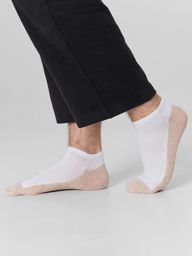 рис.3091 Суперкороткие мужские носки с цветной нижней частью следа, пяткой, мыском. белый /бежевый меланж